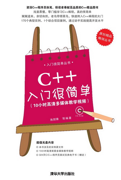 本书是一本与众不同的面向初学者的C++读物,不需要读者有太多的基础。本书以简单实用为原则,讲解通俗易懂,循序渐进,避免了云山雾罩、晦涩难懂。本书语言轻松活泼,用类比、对比、比喻等写作手法,并配合图解教学,对难点之处又给出了必要提示;书中的每个知识点都对应相应的编程实例,便于读者一边学习一边动手实践,既可以提高读者的动手能力,也可以激发学习兴趣。本书配1张光盘,内容为本书配套教学视频及源代码。另外,光盘中还赠送了Visual C++项目开发的源代码及教学视频。 本书共19章,分为5篇。第1篇C++编程基础介绍了程序设计基本概念、基本数据类型和运行符、数组、指针与引用、结构体和共用体、函数封装;第2篇面向对象程序设计介绍了类和对象、继承、虚函数和多态性;第3篇C++模板介绍了函数模板、类模板和标准模板库;第4篇介绍了输入/输出流和文件流、异常处理、程序预处理、string类和其他信息;第5篇C++项目实战介绍了一个学生管理系统的 开发。 本书适合C++编程新手阅读;有一定基础的读者,也可通过本书进一步理解C++的各个重要概念及知识点;对于大、中专院校的学生和培训班的学员,本书也不失为一本好教材。