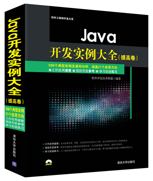 前 言 特别说明: 《Java开发实例大全》分为基础卷和提高卷(即本书)两册。本书的前身是《Java开发实战1200例(第II卷)》。 编写目的 1.方便程序员查阅 程序开发是一项艰辛的工作,挑灯夜战、加班加点是常有的事。在开发过程中,一个技术问题可能会占用几天甚至更长时间。如果有一本开发实例大全可供翻阅,从中找到相似的实例作参考,也许几分钟就可以解决问题。本书编写的主要目的就是方便程序员查阅、提高开发效率。 2.通过分析大量源代码,达到快速学习之目的 本书提供了约600个开发实例及源代码,附有相应的注释、实例说明、关键技术、设计过程和秘笈心法,对实例中的源代码进行了比较透彻的解析。相信这种办法对激发学习兴趣、提高学习效率极有帮助。 3.通过阅读大量源代码,达到提高熟练度之目的 俗话说“熟能生巧”,读者只有通过阅读、分析大量源代码,并亲自动手去做,才能够深刻理解、运用自如,进而提高编程熟练度,适应工作之需要。 4.实例源程序可以“拿来”就用,提高了效率 本书的很多实例,可以根据实际应用需求稍加改动,拿来就用,不必再去从头编写,从而节约时间,提高工作效率。 本书内容 本书共有600个左右的实例,每个实例及源代码按实例说明、关键技术、设计过程、详尽注释、秘笈心法的顺序进行了分析解读。全书分6篇共21章,主要内容有Java图形与文本、Java图像处理、绘图特效、动画和游戏、打印报表、管理图像文件、JFreeChart基本操作、基础图表技术、扩展图表技术、初识XML、XML Schema、解析XML文件...