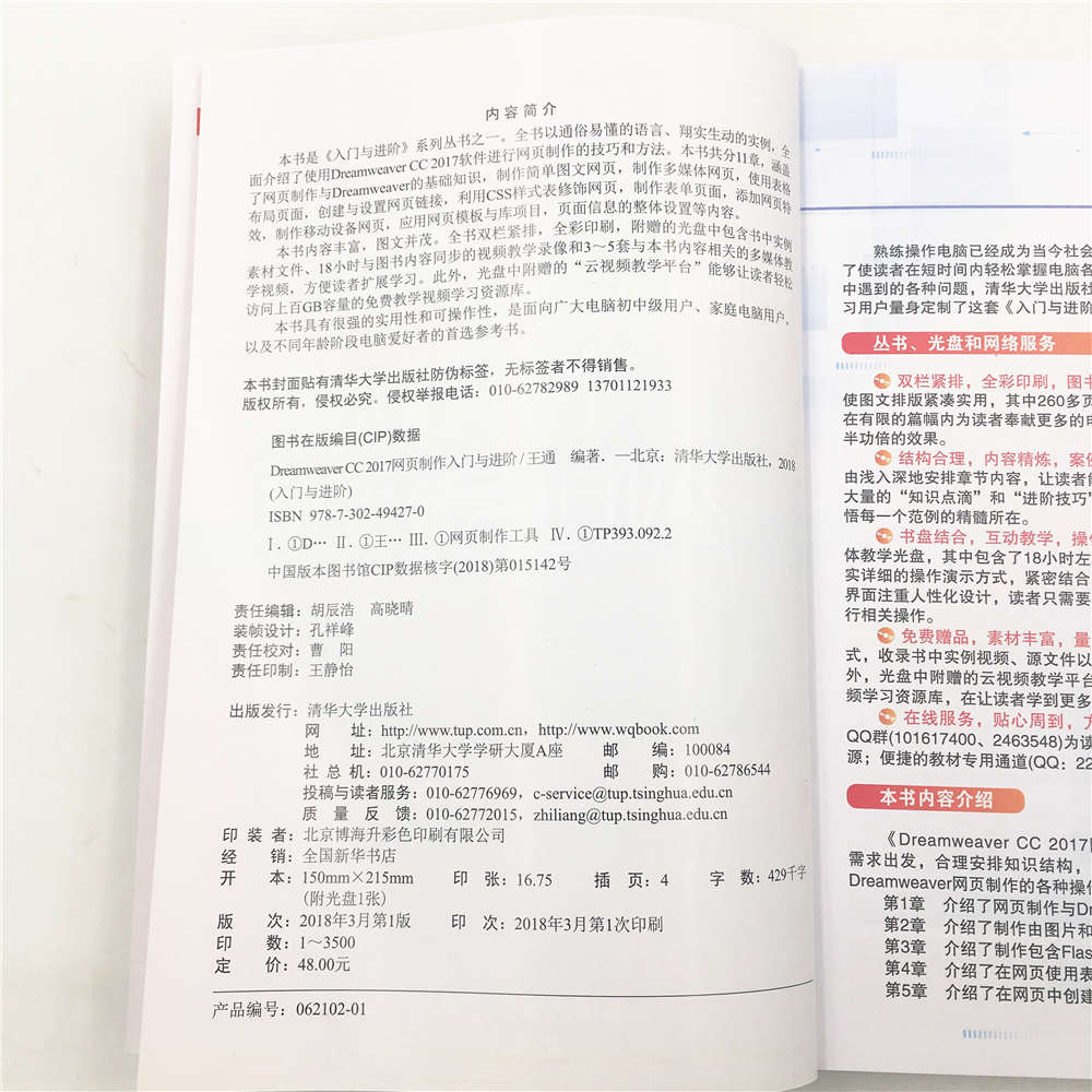 前言 熟练操作电脑已经成为当今社会不同年龄层次的人群必须掌握的一门技能。为了使读者在短时间内轻松掌握电脑各方面应用的基本知识,并快速解决生活和工作中遇到的各种问题,清华大学出版社组织了一批教学精英和业内专家特别为电脑学习用户量身定制了这套《入门与进阶》系列丛书。 丛书、光盘和网络服务 双栏紧排,全彩印刷,图书内容量多实用 本丛书采用双栏紧排的格式,使图文排版紧凑实用,其中260多页的篇幅容纳了传统图书一倍以上的内容。从而在有限的篇幅内为读者奉献更多的电脑知识和实战案例,让读者的学习效率达到事半功倍的效果。 结构合理,内容精炼,案例技巧轻松掌握 本丛书紧密结合自学的特点,由浅入深地安排章节内容,让读者能够一学就会、即学即用。书中的范例通过添加大量的“知识点滴”和“进阶技巧”的注释方式,突出重要知识点,使读者轻松领悟每一个范例的精髓所在。 书盘结合,互动教学,操作起来十分方便 丛书附赠一张精心开发的多媒体教学光盘,其中包含了18小时左右与图书内容同步的视频教学录像。光盘采用真实详细的操作演示方式,紧密结合书中的内容对各个知识点进行深入的讲解。光盘界面注重人性化设计,读者只需要单击相应的按钮,即可方便地进入相关程序或执行相关操作。 免费赠品,素材丰富,量大超值,实用性强 附赠光盘采用大容量DVD格式,收录书中实例视频、源文件以及3~5套与《Dreamweaver CC 2017网页制作入门与进阶》内容相关的多媒体教学视频。此外,光盘中附赠的云视频教学平台能够让读者轻松访问上百GB容量的免费教学视频学习资源库,在让读者学到更多计算机知识的同时真正做到物超所值...