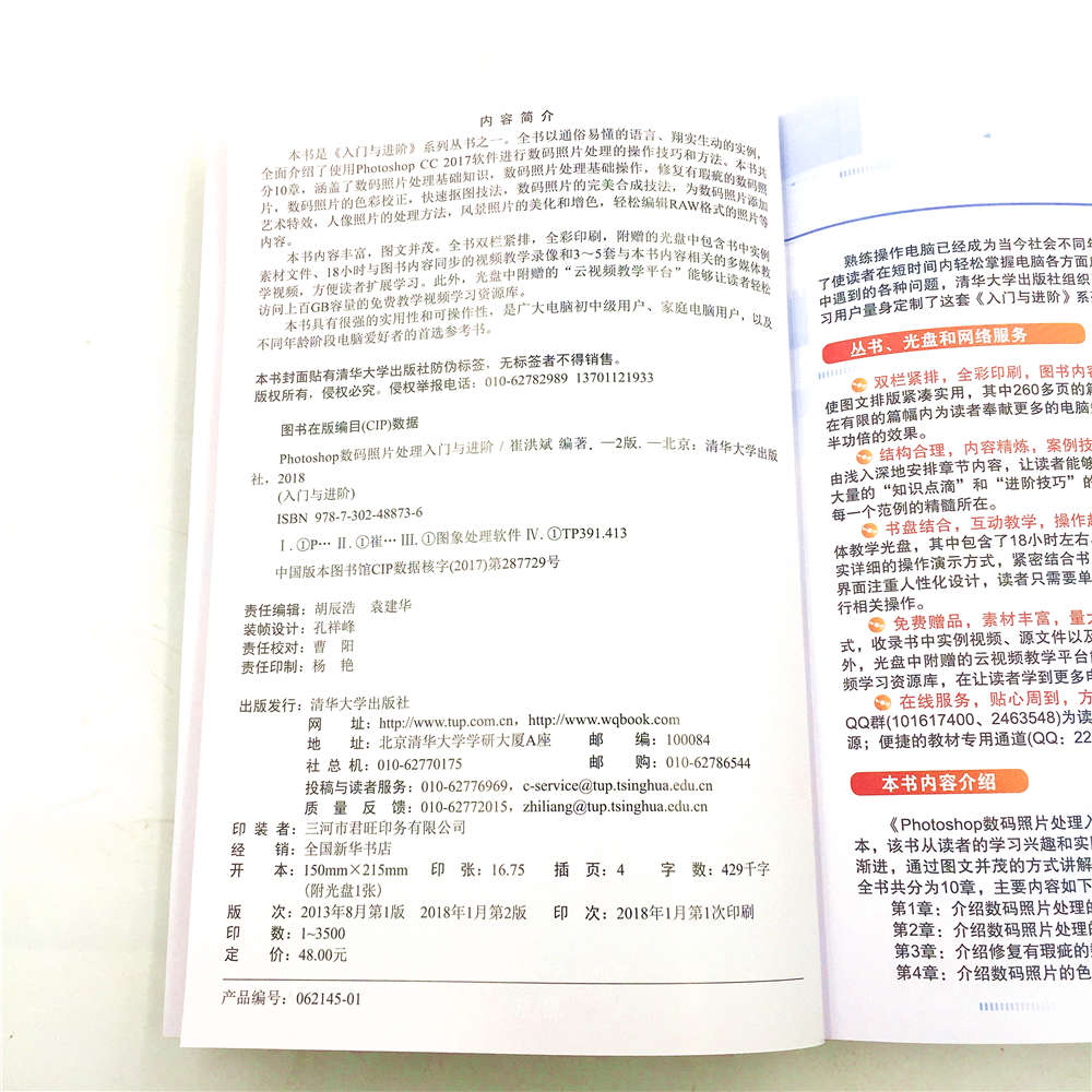 《Photoshop数码照片处理入门与进阶(第2版)》是《入门与进阶》系列丛书之一。全书以通俗易懂的语言、翔实生动的实例,全面介绍了使用Photoshop CC 2017软件进行数码照片处理的操作技巧和方法。《Photoshop数码照片处理入门与进阶(第2版)》共分10章,涵盖了数码照片处理基础知识,数码照片处理基础操作,修复有瑕疵的数码照片,数码照片的色彩校正,快速抠图技法,数码照片的完美合成技法,为数码照片添加艺术特效,人像照片的处理方法,风景照片的美化和增色,轻松编辑RAW格式的照片等内容。 《Photoshop数码照片处理入门与进阶(第2版)》内容丰富,图文并茂。全书双栏紧排,全彩印刷,附赠的光盘中包含书中实例素材文件、18小时与图书内容同步的视频教学录像和3~5套与本书内容相关的多媒体教学视频,方便读者扩展学习。此外,光盘中附赠的“云视频教学平台”能够让读者轻松访问上百GB容量的免费教学视频学习资源库。 《Photoshop数码照片处理入门与进阶(第2版)》具有很强的实用性和可操作性,是广大电脑初中级用户、家庭电脑用户,以及不同年龄阶段电脑爱好者的首选参考书。