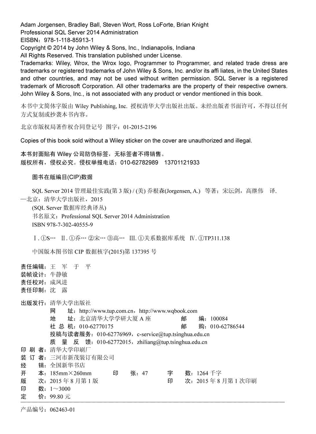 作者:[美]Adam Jorgensen,Bradley Ball,Steven Wort,Ross LoForte,Brian Knight 著 宋沄剑 高继伟 译
