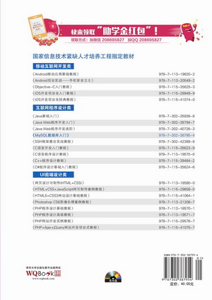 为什么出这本书 数年前,传智播客团队是一群默默工作在IT岗位的程序员,现如今,为了同一个梦想,我们聚集在一起,为“改变中国的IT教育”而全力以赴。为什么会有这样的梦想?大家先来听一听IT毕业生的心声: “我们专业的课程太枯燥了,太多理论方面的课程,并且这些理论听起来都是很难理解的,同学们学完了都是一头雾水。” “终于毕业了,学了四年的计算机课程,我们班上大部分同学都不知道能干什么,感觉好像什么都学了,但却什么都不会干!” “实习单位根本就不让我们干活,最多只是让我们阅读代码、修改文档,说我们什么都不会,不敢让我们参与实际工作。想想自己辛苦学了四年连实习的要求都达不到,心里很不是滋味。” “面试的时候,用人单位问能做什么,做过什么项目,我们回答不上来,面试过程中问到的很多问题,我们连听都没有听过。” …… 这些心声并不是个别毕业生所表达的,而是中国高校反映出的一种普遍现象。高校的IT教育与企业的真实需求存在脱节,如果高校的相关课程仍然不进行更新的话,毕业生将继续面临难以就业的困境。出现这样的困境的主要原因在于教材更新速度缓慢,导致学生所学的知识与现在的社会需求不符,无法向学生传授企业需要的专业技能。面对高校所存在的问题,国务院近期也提出了提高高等教育质量的改革要求,很庆幸,我们所做的事情就是配合高校完成教学改革。 传智播客作为一家专业的IT培训机构,一直将“改变中国的IT教育”作为自己的事业,并为此拼搏了9年。在这9年期间,传智播客默默耕耘,陆续出版了计算机书籍十几本、教学视频几十套、发表各类技术文章几百篇,直接培养的软件工程师就有10万多名,被传智播客影响的...