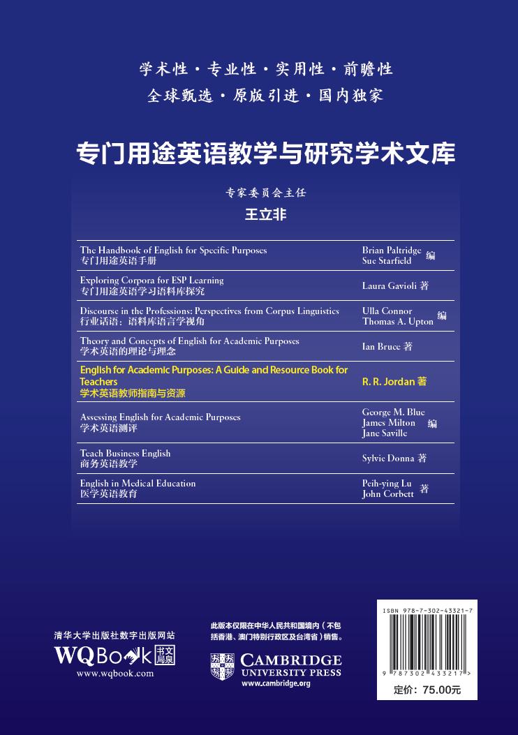 本书作者R. R. Jordan是英国EAP(English for Academic Purposes)学派著名学者,是上世纪70年提倡EAP概念的主要人物。本书为学术英语教师提供全面深入的阐述。不仅关注学术英语的教学技巧,同时涉及有关EAP的其他诸多核心理念,如需求分析、教学大纲与课程设计、教学法、教学资源、学习风格、测评与考试、学术风格与体裁分析,等等。除了通用学术英语,本书作者还关注特定学科的语言和教学资源。 本书的读者对象是EFL教师(母语或二语)、ELT/ESP教师和应用语言学者,旨在为读者提供EAP理论研究基础及有关实践指导。