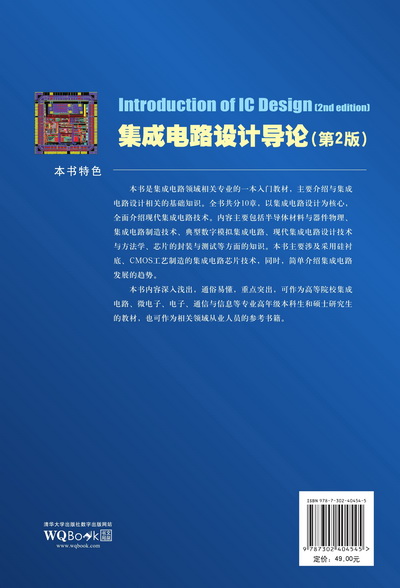本书是集成电路领域相关专业的一本入门教材,主要介绍与集成电路设计相关的基础知识。全书共分10章,以集成电路设计为核心,全面介绍现代集成电路技术。内容主要包括半导体材料与器件物理、集成电路制造技术、典型数字模拟集成电路、现代集成电路设计技术与方法学、芯片的封装与测试等方面的知识。本书主要涉及采用硅衬底、CMOS工艺制造的集成电路芯片技术,同时,简单介绍集成电路发展的趋势。 本书可作为高等院校集成电路、微电子、电子、通信与信息等专业高年级本科生和硕士研究生的教材或相关领域从业人员的参考书籍。