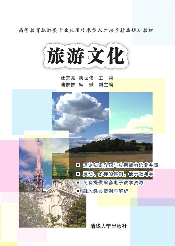 前言 旅游业作为一种文化性很强的经济产业,无论是作为旅游者还是作为旅游从业人员,学习和掌握旅游地的文化都是极为重要的。对于旅游者而言,了解旅游地文化可以了解异国情调、游览他乡风物、体验异地文化; 对于旅游从业人员而言,可以从文化的视角分析、研究和开发利用旅游资源,发展旅游产业。由此可见,《旅游文化》既是旅游专业人士的必读之书,也是广大旅游爱好者了解异域文化加深旅游体验的参考书目。 本书从理论上梳理了近年来中国旅游界对“旅游文化”诸课题的研究,并针对旅游文化的构成内容展开具体介绍,同时也对有关文化资源的利用提出相关开发建议和对策。与其他同类型的书相比,本书具有以下几个方面的特点。 一是本书注重培养学生的理论与实践能力。将全书的十二章内容分成三大模块,循序渐进地逐一介绍理论模块、内涵模块和开发利用实务模块,让学习者深入浅出地学习和掌握相关理论和鲜活的文化要素内涵。 二是本书编写图文结合,内容丰富。针对文化形式的多样性,单一的文字表述可能无法全面展现文化内涵。教材编写过程中注重图文结合的方式,不仅通过文字对各种文化形式加以详述,同时配以代表性的图片,提升学习者的直观感受,激发学习者的兴趣。 三是每章配有引导案例、学习导航和教学建议,同时配合大量的知识链接和案例,既方便学生的学习,又方便教师的课堂教学。 四是注重学生自我学习和分析能力的培养。本书每章根据章节内容设定操作性较强的实训项目环节,加强学生自我学习和分析能力; 此外,本书还配备相关练习题库,以加强学生对相关知识点的理解和巩固。 本书由汪东亮、胡世伟负责全面规划和统稿,具体分工为: 胡世伟(成都...