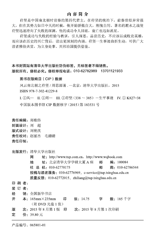 苻坚,这位乱世中雄起的一代人杰,他武功赫赫,在各民族蜂起的战乱之中完成了南北朝时期中国北方的第一次统一。他政治修明,以德治国,深得百姓爱戴。他在取得如此辉煌的功绩之后,却数次决策失误,决然发动淝水之战,南下攻晋,意图一统全国,却一战而失天下,留下了千古耻辱。 这位人生转折如此巨大的帝王,究竟该如何评价?学者周思源通过精彩的讲述,将南北朝的乱世风云徐徐展开,首次全面讲述苻坚大帝被后人误解的一生,深度解读淝水之战前后的微妙时局。