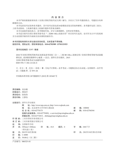 本书严格依据最新颁布的《全国计算机等级考试大纲》编写,并结合了历年考题的特点、考题的分布和解题的方法。 本书包括真考试卷和真考题库,其中真考试卷包括10套模拟试卷及答案和解析;真考题库包括三部分:上机考试指南、上机操作题及上机操作题参考答案及解析。 本书光盘提供强化练习、真考模拟环境、评分与视频解析、名师讲堂等模块。 本书适合报考全国计算机等级考试“二级MS Office高级应用”科目的考生选用,也可作为大中专院校相关专业的教学辅导用书或相关培训课程的辅导书。