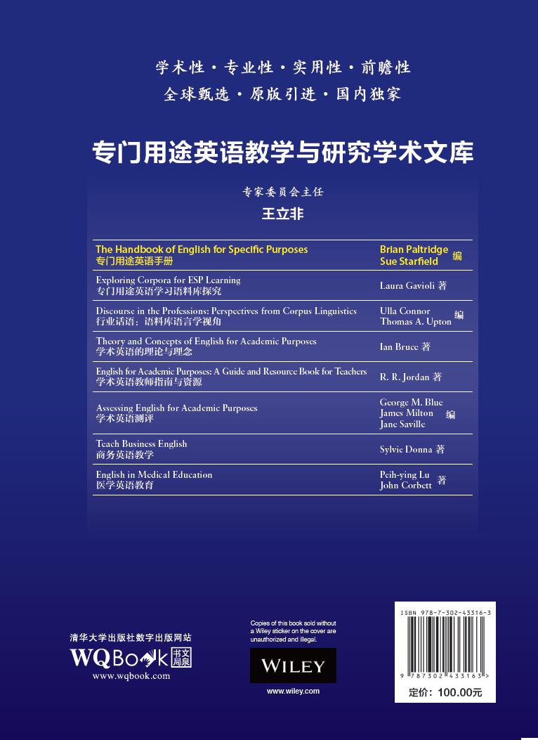 本书收集了全球范围内近年来在ESP研究领域最为前沿和具有学术价值的研究成果,内容涉及ESP研究最为核心和主要的方面,涵盖它的起源、演变及未来的发展方向。全书由语言技能、研究领域、教学法、研究视角和研究方法等四大部分构成。前半部分的章节重点论述ESP研究的历史和现状,包括听说读写基本技能、商务英语、法律英语、医护英语、技术英语等;后半部分的章节则主要着眼于ESP研究的远景与视角,话题包括体裁、跨文化修辞学、多模态研究等。 本书是一部全面、综合、权威、前沿的ESP研究著作,呈现了世界 ESP 研究的热点问题和发展趋势,是一部研究专门用途英语的集大成者。
