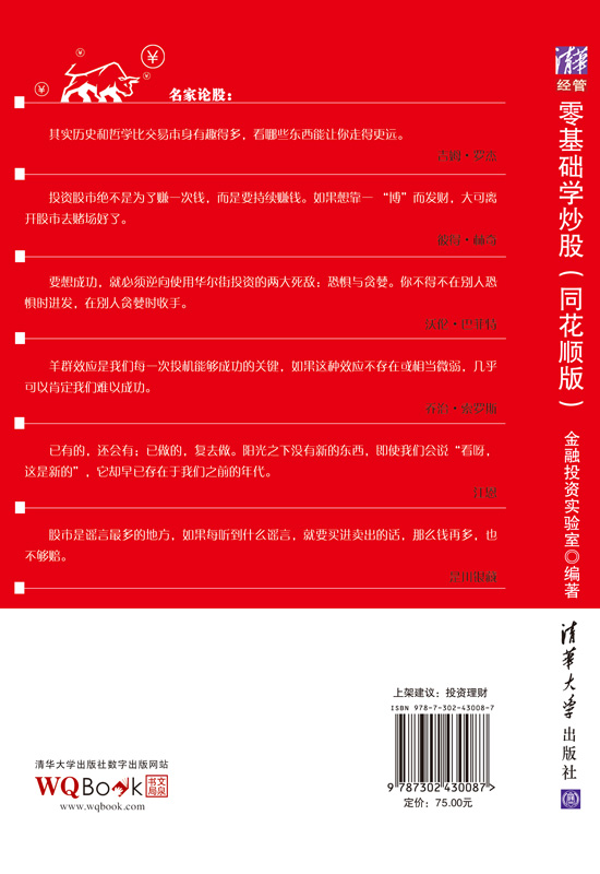 在定期存款、股票、期货、基金等一系列的理财方式中,股票是让人又爱又恨的一种,门槛低、收益相对高、风险可控等优点让它具备长久的诱惑力,但是面对股市里数量繁多的股票,我们应该把宝贵的资金投入到哪些股票中。对于散户来说,需要从很多方面来思考入手的问题。 如果只是从中随意选择,偶尔能捞一桶金不算难事,但是想要源源不断地获得盈利却是不可能的。原因是他们不懂更新知识和自如地运用学到的知识。对于股票基础知识为零的新手来说,应该懂得武装好大脑,才能充实钱包的道理。 随着互联网信息技术的发展,特别是宽带网络的广泛应用,证券公司纷纷开通了网上交易。通过网上交易系统,可减少证券公司的经营成本。所以,很多证券公司都会给网上交易的投资者进行佣金的优惠。另一方面,使用网上交易系统,投资者足不出户就可以完成股票的交易,也提高了操作效率,实现了原来大户室才能实现的功能。 投资者若准备使用网上交易进行炒股,首先必须掌握炒股软件的使用方法,本书正是介绍炒股软件的教程,通过阅读本书,读者将学会同花顺炒股软件的使用。 本书特点 从零开始:本书第1~2章介绍了炒股中需要到的基础知识,让没有股市经验的投资者也可轻松加入炒股行列。 按模块讲解:本书在编写过程中尽量按投资者实际操作的流程,分模块介绍软件的不同功能。 实例讲解:本书全部以实例讲解每一个操作,方便投资者对照学习,快速入门。 适用面广:本书详细介绍了同花顺软件在计算机中对股票进行分析的方法,还介绍了通过手机炒股的相关知识,包括软件的下载、安装和使用。能够使读者掌握一种新的看盘、交易方式。 多种投资品种:除去投资沪深股票以外,本书还讲解了股指期货、...
