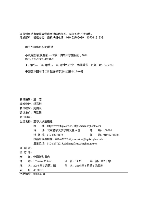 2. 本书体系完整,论述严谨,行文极具时代特征,同时兼备社会热点,迎合社会中坚力量、创业青年口味,又能引导90后有志新秀感受“小众”之热。