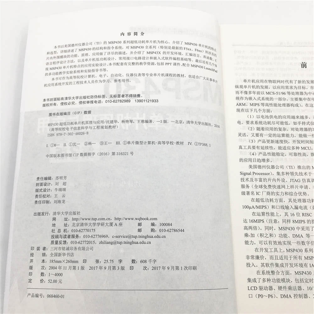 本书以美国德州仪器公司(TI)的MSP430系列超低功耗单片机为核心,介绍了MSP430单片机的特点和选型,详细讲述了MSP430的结构和指令系统,对MSP430全系列(特别是最新的F5xx、F6xx)所涉及的片内外围模块的功能、原理、应用做了详尽的描述,并介绍了MSP43X的开发环境、汇编语言、库函数、C语言程序设计方法,以及单片机低功耗设计、常用接口电路设计和嵌入式软件编程基础等。最后还有几个体现MSP430单片机特点的应用实验设计。本书配套有完整的教学资源,包括PPT课件、配合MSP430 LaunchPad的多功能教学实验系统和实验指导书等。 本书可作为高等院校计算机、电子、自动化、仪器仪表等专业单片机课程的教材,也适合广大从事单片机应用系统开发的工程技术人员作为学习、参考用书。
