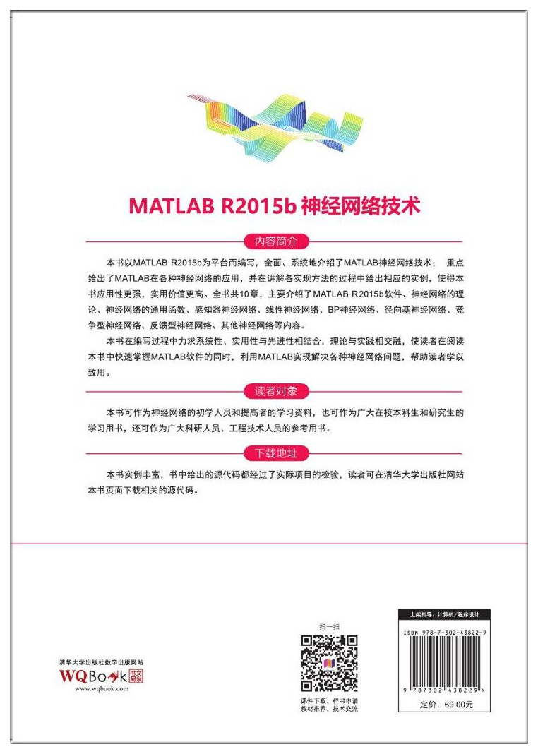 本书以MATLAB R2015b为平台而编写,全面、系统地介绍了MATLAB神经网络技术; 重点给出了MATLAB在各种神经网络的应用,并在讲解各实现方法的过程中给出相应的实例,使得本书应用性更强,实用价值更高。全书共10章,主要介绍了MATLAB R2015b软件、神经网络的理论、神经网络的通用函数、感知器神经网络、线性神经网络、BP神经网络、径向基神经网络、竞争型神经网络、反馈型神经网络、其他神经网络等内容。本书在编写过程中力求系统性、实用性与先进性相结合,理论与实践相交融,使读者在阅读本书中快速掌握MATLAB软件的同时,利用MATLAB实现解决各种神经网络问题,帮助读者学以致用。 本书可以作为神经网络的初学人员和提高者的学习资料,也可作为广大在校本科生和研究生的学习用书,还可以作为广大科研人员、工程技术人员的参考用书。