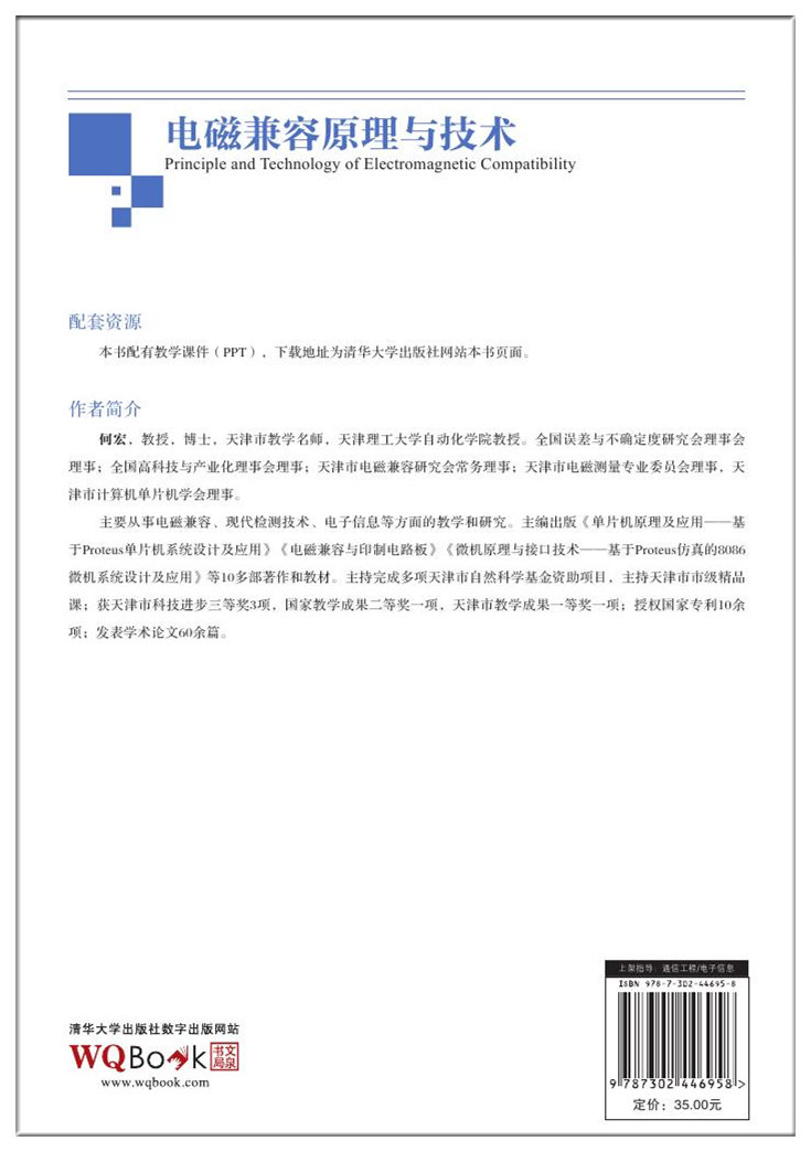 在电子、电气、计算机、通信、铁路交通、航空航天、军事以及人们生活的各个方面,都会涉及电磁兼容(ElectroMagnetic Compatibility,EMC)问题,本教材深入浅出地介绍电磁兼容原理与技术。全书共分9章: 第1章为电磁兼容技术概述; 第2章为电磁兼容理论基础; 第3章为干扰耦合机理; 第4章为滤波技术; 第5章为接地技术; 第6章为屏蔽技术; 第7章为印制电路板PCB的电磁兼容设计; 第8章为计算机系统中的电磁兼容性; 第9章为电磁兼容的预测与建模技术。 本教材适合于电子信息、电气工程、自动控制与机电一体化、计算机技术、仪器仪表、检测技术、生物医学工程等专业的本科生和研究生,还可作为从事电磁兼容测试、分析、设计,以及电气和电子产品研发、设计、制造、质量管理、检测与维修工程技术人员的参考书或相关专业的培训教材。