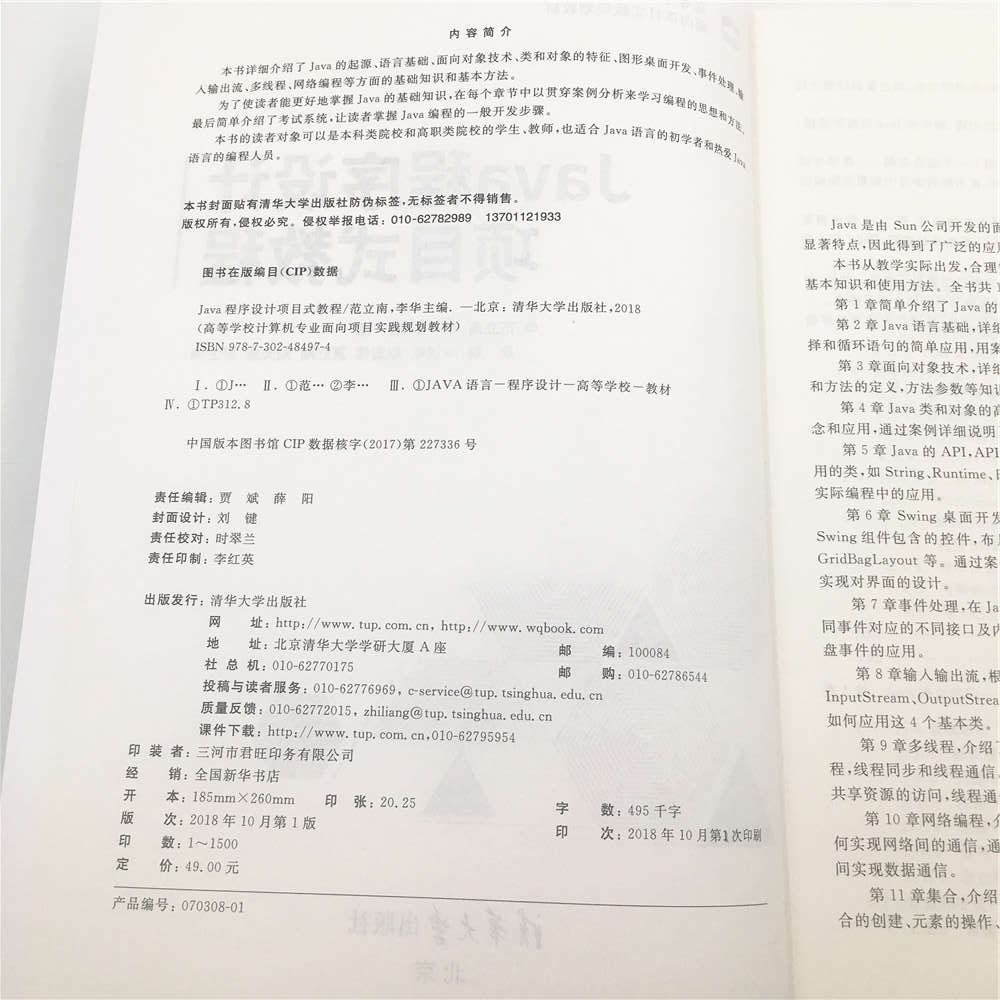 本书旨在面向较大的用户范围,因此在内容编排上做了精心的安排,首先介绍Java语言的特点和开发环境设置,进而介绍java语言的编程基础,包括基本语法、流程控制和数组与字符串等。在第三、四、五章开始介绍Java语言的面向对象程序设计方法,包括封装性、继承性、多态性、异常处理以及基本类库。第六、七章介绍图形用户界面(GUI)和小程序设计(Applet),第八、九章介绍输入输出与文件处理、多线程,最后一部分内容介绍网络编程相关知识。