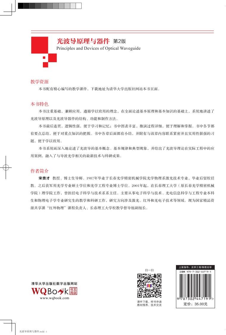 (1) 本书注重基础,兼顾应用,遵循学以致用的理念,在全面论述基本原理和基本知识的基础上,系统地讲述了光波导原理以及光波导器件的结构、功能和制作方法。