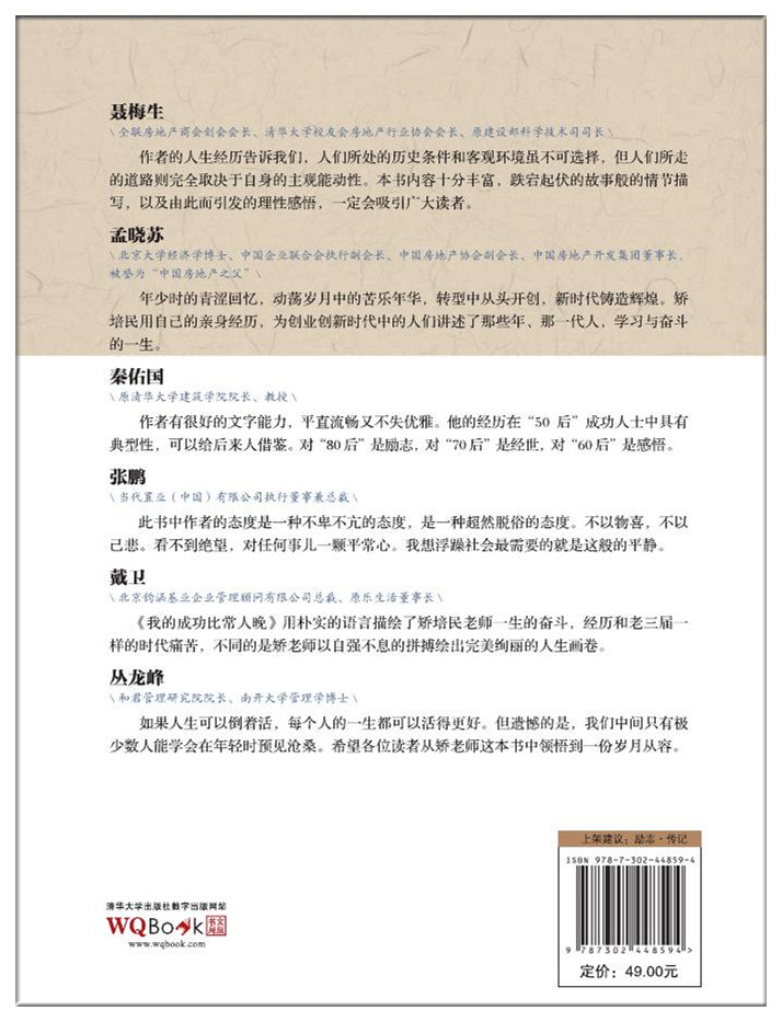 本书是一位留过洋、当过大学教授、有企业实战经验又旁观企业经营的过来人对于管理、对于人生的坦诚反思与总结。书中讲述了与优秀企业家王石、王明夫作为同事相处的故事,详细介绍了如何从零开始带团队,并将团队打造成行业第一。书中文章时空交错,跨越20世纪50年到现在的半个世纪、从中国到美国再到荷兰的半个世界,作者近乎传奇的人生经历让人唏嘘。全书以简练而不失厚重的文字告诉我们,比常人晚成功的人生也很美丽!