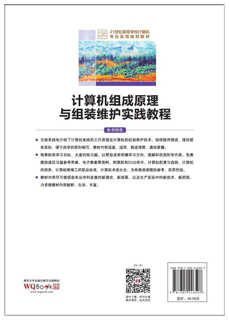 全面系统地介绍了计算机系统的工作原理及计算机的组装维护技术。按照循序渐进、理论联系实际、便于自学的原则编写,教材内容适量、适用,叙述清楚,通俗易懂。 每章配有学习目标、大量的练习题,以帮助读者明确学习方向、理解和巩固所学内容。免费提供课后习题参考答案、电子教案等资料,附录配有DOS命令、计算机配置与选购、计算机的保养、计算机维修工的职业标准、计算机术语大全,为各类读者提供参考、实用性强。 教材内容尽可能吸收专业学科发展的新理论、新成果,以及生产实际中的新技术、新经验,力求使教材内容新鲜、生动、丰富。 如果希望加入教师微信交流群,请加微信:itbook8 如果希望加入教师QQ交流群,请加QQ:883604 加入时,请写明:“学校+姓名”,并写明“加入教师群”,只限教师。