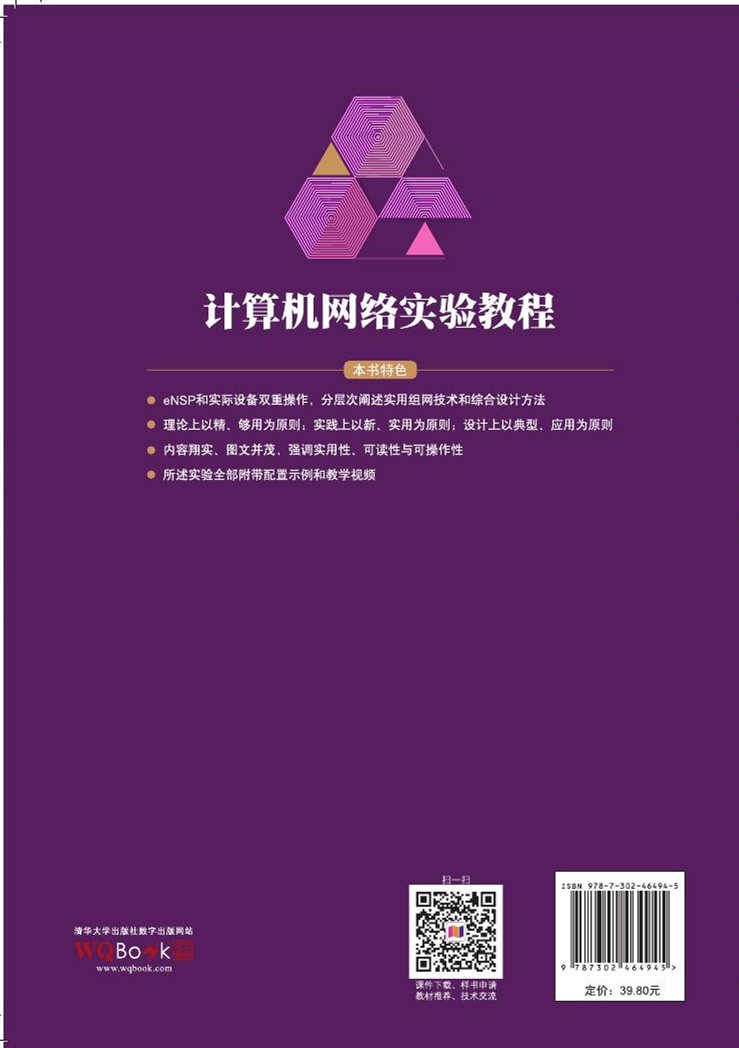 3. 在设计上,介绍目前比较典型的、应用比较广泛的中小型园区网络设计方法。本书中所述实验依据全部录制视频并上传至教学网站。