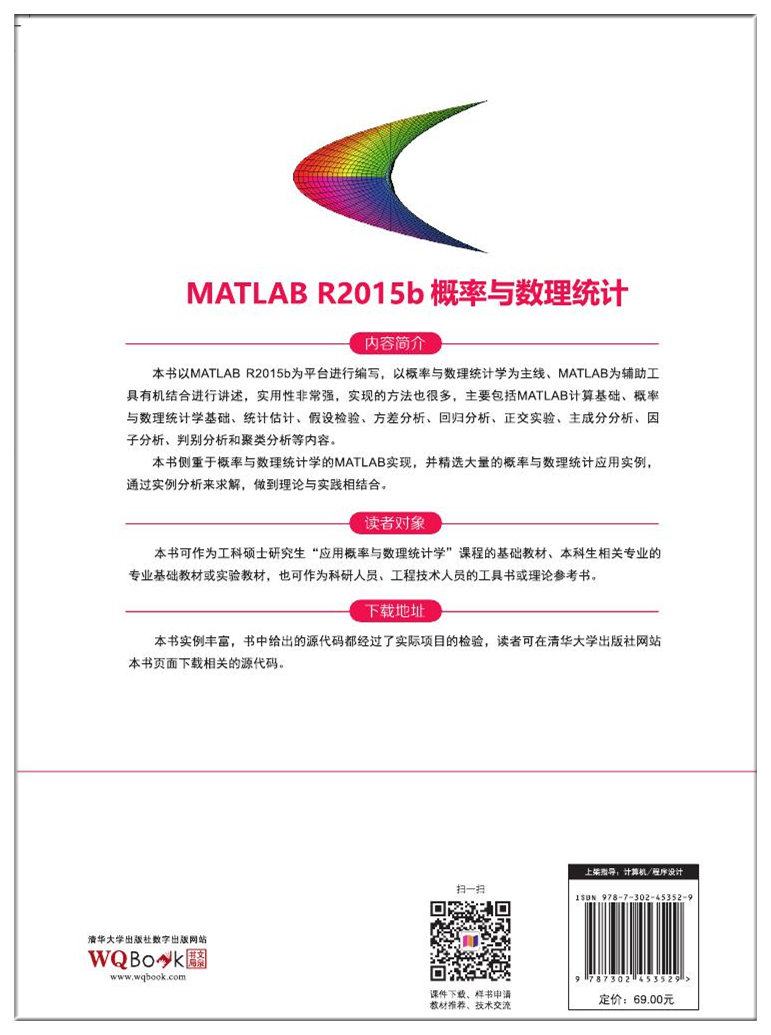 本书是“精通MATLAB”丛书之一,全书基于MATLABR2015a平台,以概率与数理统计学为主线、MATLAB为辅助工具有机结合进行讲述,实用性非常强,实现的方法也很多。作者还将理论与实践相交融,结合实际工作中的开发经验、心得体会,而且精心编写了170多个MATLAB概率与数理统计应用典型实例,供读者学习、开发时参考。本书提供所有程序源代码。“精通MATLAB”相关书目如下: (1)MATLAB 8.X实战指南(R2014a中文版) (2)数字图像处理高级应用——基于MATLAB和CUDA的实现 (3)MATLAB通信系统建模与仿真 (4)MATLABR2015a数字图像处理 (5)MATLABR2015b数学建模 (6)MATLABR2015a小波分析 (7)MATLABR2015b神经网络技术 (8)MATLABR2015b最优化计算 (9)MATLABR2015b概率与数理统计 如果希望加入教师微信交流群,请加微信:itbook8 如果希望加入教师QQ交流群,请加QQ:883604 加入时,请写明:“学校+姓名”,并写明“加入教师群”,只限教师。