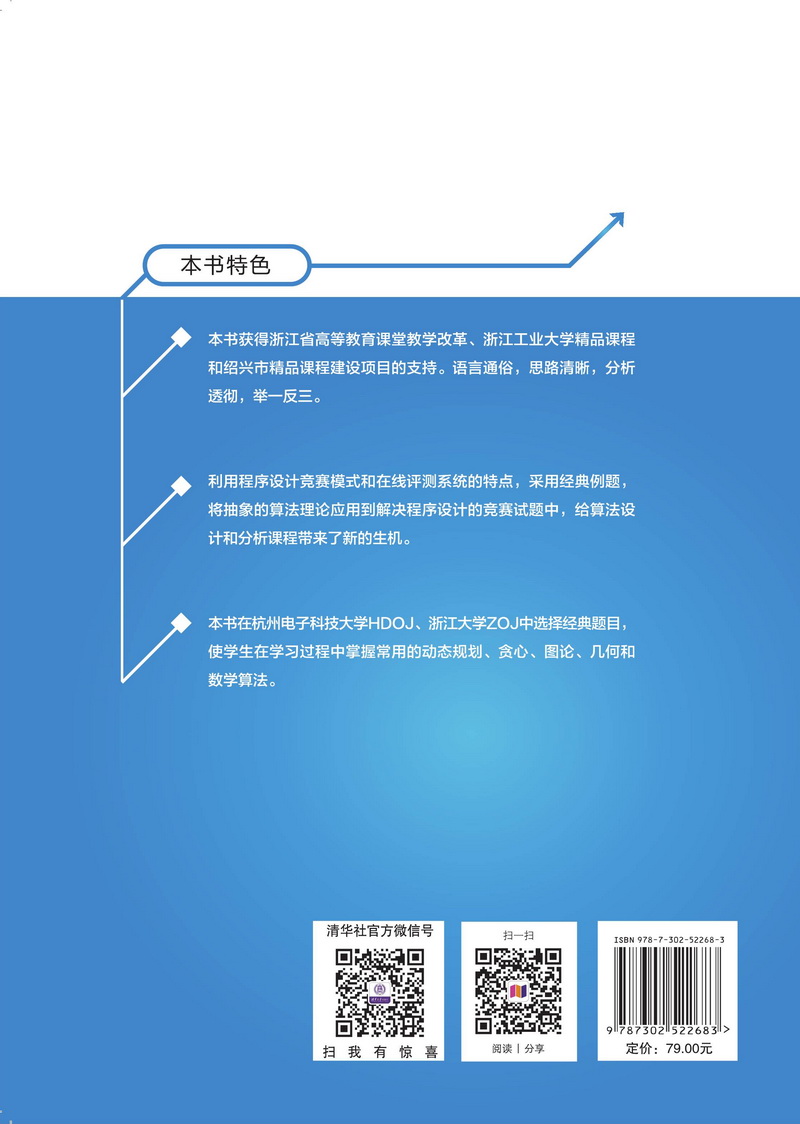 本书利用程序设计竞赛模式和在线评测系统的特点,采用经典例题讲解,将抽象的算法理论应用到解决程序设计的竞赛试题中,给算法设计和分析课程带来了新的生机。