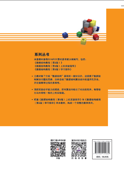 本书在前4版的基础上针对教育部新的考研大纲和大量读者来信提出的要求进行了修订。本书共13章,内容包括绪论、线性表、栈和队列、串、递归、数组和广义表、树和二叉树、图、查找、内排序、外排序和文件等,书中给出了大量练习题和各类上机实验题,每个知识点都配有视频讲解。 本书内容全面,知识点翔实,条理清晰,讲解透彻,实例丰富,实用性强,适合高等院校计算机和相关专业的本科生及研究生使用。
