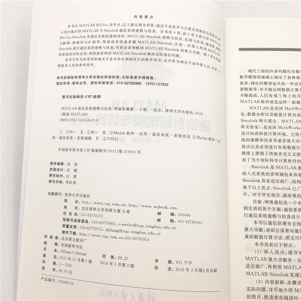 本书以MATLAB R2016a为平台,以工程实例为背景,通过专业技术与大量实例相结合的形式,深入浅出地介绍MATLAB与Simulink通信系统建模与仿真。全书共9章,前8章主要介绍MATLAB R2016a、Simulink及通信系统的基础知识、MATLAB/Simulink建模与仿真、信源与信道、滤波器、调制与解调、锁相环与扩频等,帮助读者快速掌握MATLAB/Simulink,并进一步深入利用MATLAB/Simulink进行通信系统建模与仿真,可使读者领略到MATLAB/Simulink的强大功能。第9章介绍通信系统的实际应用,帮助读者利用MATLAB/Simulink解决实际通信问题。 本书可作为高等学校相关专业本科生和研究生的教学用书,也可作为相关专业科研人员、学者、工程技术人员的参考用书。