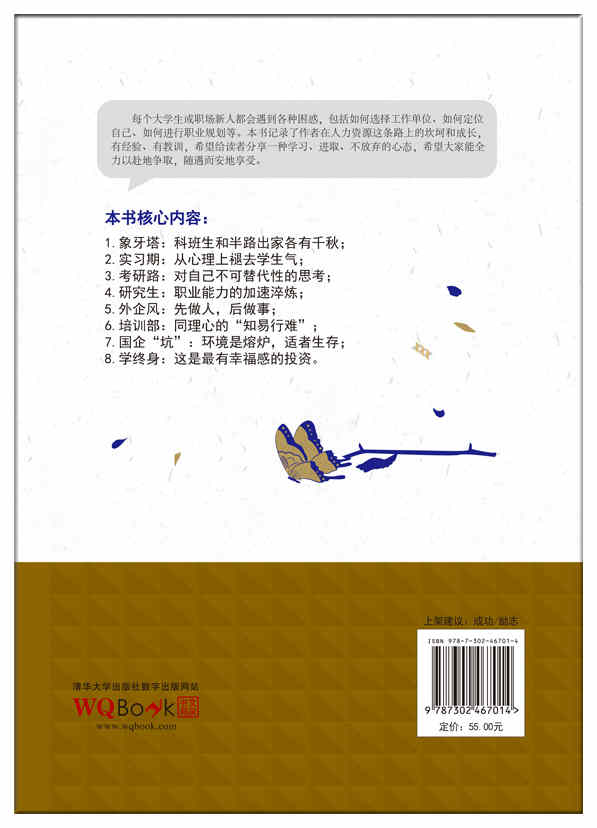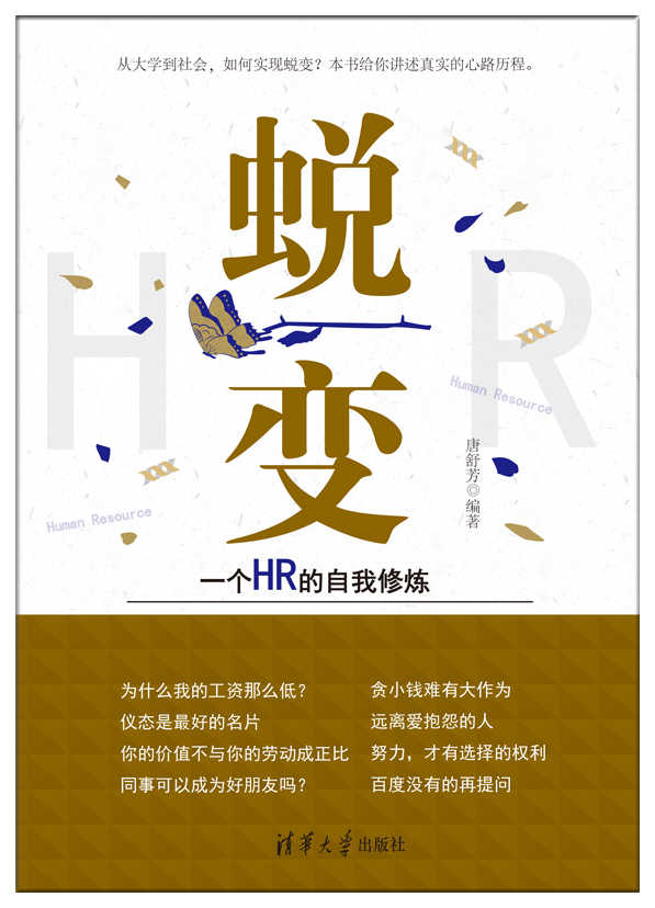 唐舒芳,飘迹于北京的HR从业者。2004年来北京求学,曾就职于某世界500强企业,涉足移动通信、游戏、汽车销售、软件开发等多个行业,熟练掌握招聘、培训、绩效考核等模块。现就职于中国电子科技集团第十五研究所外贸事业部人力资源部,已出版个人译作《成功人士的七个秘密》《礼仪的价值》《穿出格调——风度绅士的精致着装主义》。