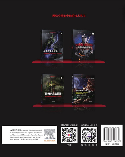 在互联网诞生和发展的过程中,与之相伴而生的是形形色色的互联网攻击。早期的攻击者大多是为了炫耀自己在计算机和网络技术方面的超人造诣,并没有涉及太多经济利益。随着互联网逐渐进入到社会经济活动中,网络攻击逐渐转向了以谋取经济利益为目的。而近些年来电子商务和互联网金融的普及则使得网络攻击的规模变得更为庞大,造成的经济和其他方面的损失也更加严重。因而,如何防范互联网上的“野蛮人”,也就是那些使用形形色色手段发起攻击的网络犯罪者,是今天这个网络时代每一个公司,甚至每个人都需要认真关注的问题。在研究和学习网络攻防的过程中,我们阅读了相关的大量文献,在此过程中,有幸研读了关于拒绝服务攻击和网络钓鱼防御的两本专著。考虑到这两类攻击发生的频率非常之高,而且造成的经济损失和其他后果相当严重,我们深感如果能够把这些专著介绍给国内的读者,会有益于网络用户和网络安全专业人员了解这两类攻击方式的原理、特点和常用防御方式。作为人工智能的核心技术,机器学习算法并非新生事物,但是直到近十年来,随着计算机硬件性能的提升、算法的改进以及海量数据的有效利用,才使得这些算法能够大量被应用在各种各样的现实场景中。尤其是近两年自动驾驶和其他各种机器人的大量涌现,更是让人惊呼人工智能主导的下一次工业革命即将到来。我们相信这本专著不但可以帮助读者了解如何利用机器学习来防御网络钓鱼,而且这些知识也有助于读者适应并投身于这场由人工智能引起的巨大变革中。 本书的内容组织为三部分:第一部分专注于网络钓鱼的工作原理及如何应用机器学习算法来防御网络钓鱼;第二部分的主题则讨论了分布式拒绝服务攻击和防御的方法;第三部分介绍了攻击网站服务器的基本原理,以及使用开源软件Burp Suite发动攻击的具体步骤。