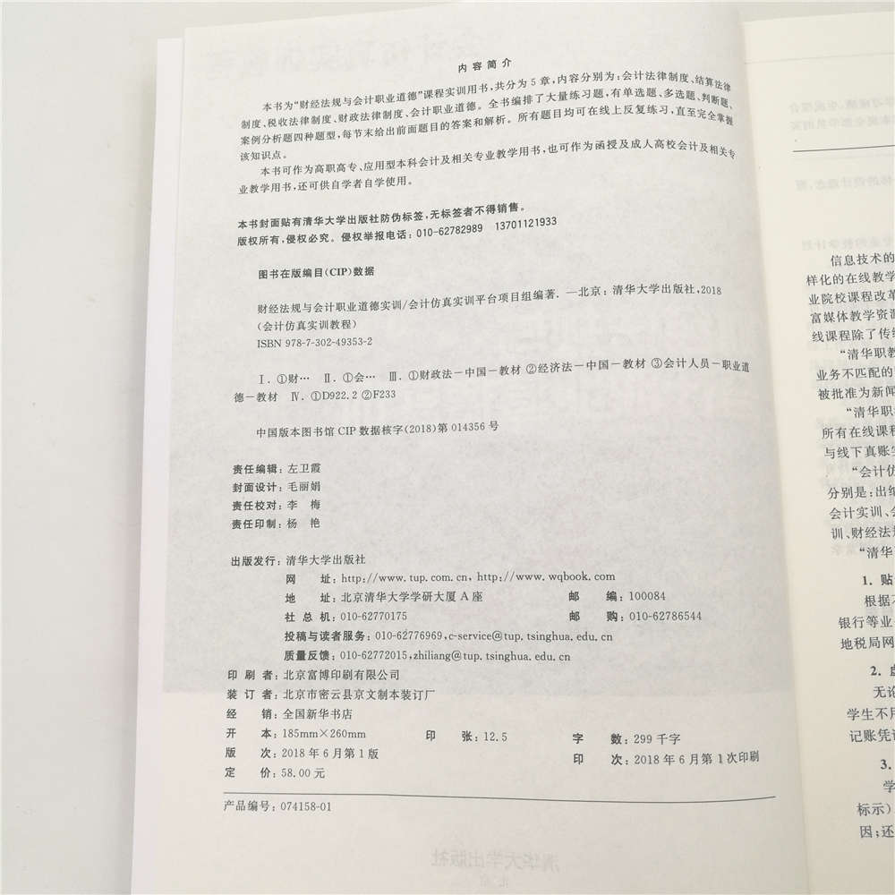 会计仿真实训平台项目组编著清华大学出版社北京内 容 简 介本书为“财经法规与会计职业道德”课程实训用书,共分为5章,内容分别为:会计法律制度、结算法律制度、税收法律制度、财政法律制度、会计职业道德。全书编排了大量练习题,有单选题、多选题、判断题、案例分析题四种题型,每节末给出前面题目的答案和解析。所有题目均可在线上反复练习,直至完全掌握该知识点。 本书可作为高职高专、应用型本科会计及相关专业教学用书,也可作为函授及成人高校会计及相关专业教学用书,还可供自学者自学使用。