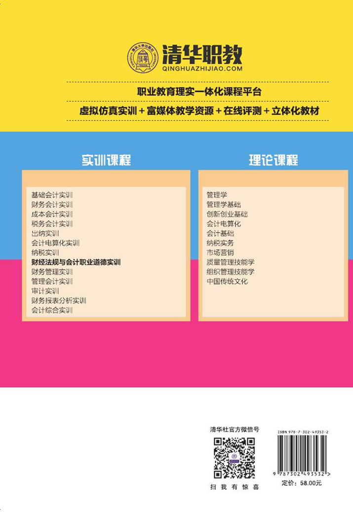信息技术的发展正深刻改变着职业教育的教学模式,职业院校的师生迫切需要更加多样化的在线教学平台。“清华职教”(www.qinghuazhijiao.com)是在认真调研、精准把握职业院校课程改革以及在线教学需求的基础上,由清华大学出版社开发的,融虚拟仿真实训、富媒体教学资源、在线过程评测于一体的职业教育理实一体化课程平台。“清华职教”的在线课程除了传统的理论课、考证课之外,最大特色在于利用仿真技术开发的会计实训课。 “清华职教”旨在解决职业院校理论教学与实训教学相脱节、实训教学内容与企业真实业务不匹配的弊端,帮助学生真正提高实务操作技能,快速具备上岗能力。该项目于2014年被批准为新闻出版改革发展项目库入库项目,并获得财政部文化产业发展专项资金支持。 “清华职教”目前上线课程涵盖会计专业的主干实训课程和财经大类的部分理论课程。所有在线课程均与纸质教材相配套,实现了理论课程与实训课程的相互配套,线上仿真实训与线下真账实操的相互融合。 “会计仿真实训教程”系列教材是“清华职教”所开发的13门实训课程的配套实训教材,分别是:出纳实训、纳税实训、审计实训、基础会计实训、财务会计实训、成本会计实训、税务会计实训、会计综合实训、财务管理实训、管理会计实训、会计电算化实训、财务报表分析实训、财经法规与会计职业道德实训。 “清华职教”会计仿真实训平台及配套教材具备以下八个方面的功能与特色。 1. 贴近岗位要求 根据不同会计岗位要求和课程特点,精选典型实训业务,如“出纳实训”除常规的现金、银行等业务仿真操作外,还提供了模拟网银操作;再如“纳税实训”,学生可登录模拟国税和地税局网站进行纳...