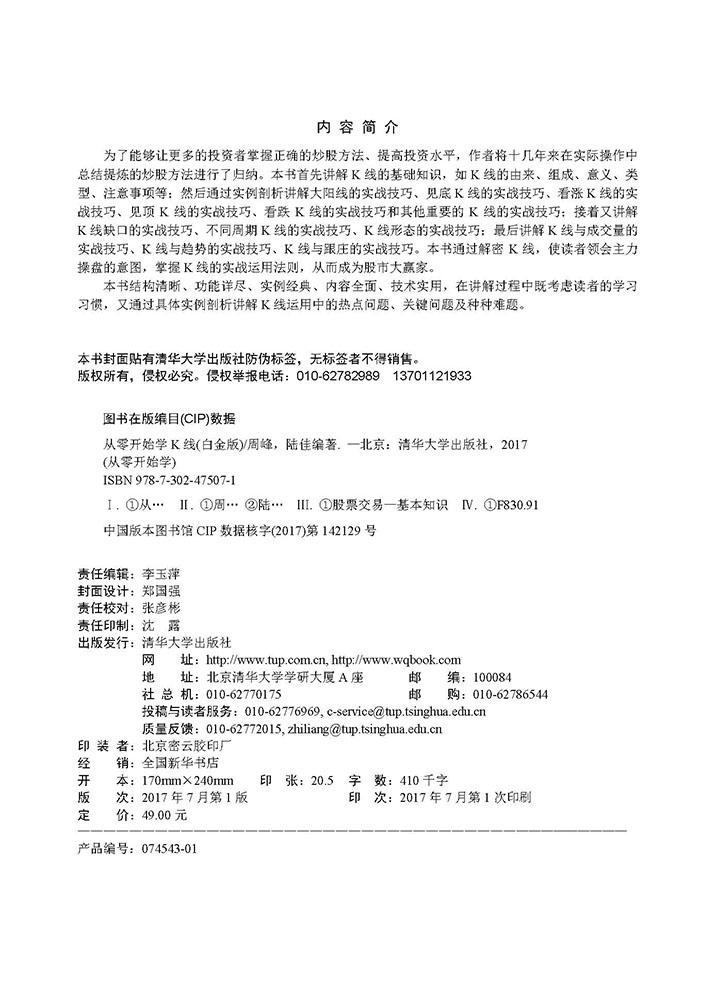 安佳理财是由一群专业的理财专家、操盘手组成的作者团队,《从零开始学》系列图书是由陆佳、周峰作为主编负责全书的重点写作和统筹。周峰,投资公司经理,业内理财高手,拥有多年股票、大宗商品、外汇、黄金、白银等理财产品的投资经验,指导客户实现了良好的投资收益,在业内具有良好的口碑。曾经参与过多部图书的写作。主要作品为“从零开始学”系列图书。 陆佳,投资公司经理,业内理财高手,拥有多年股票、大宗商品、外汇、黄金、白银等理财产品的投资经验,指导客户实现了良好的投资收益,在业内具有良好的口碑。曾经参与过多部图书的写作。主要有以下几本图书:《网上炒黄金做赢家——行情分析与软件实操 》《网上外汇交易实战入门 》 ,参与编写了清华大学出版社出版的“从零开始学”系列图书的多部图书。