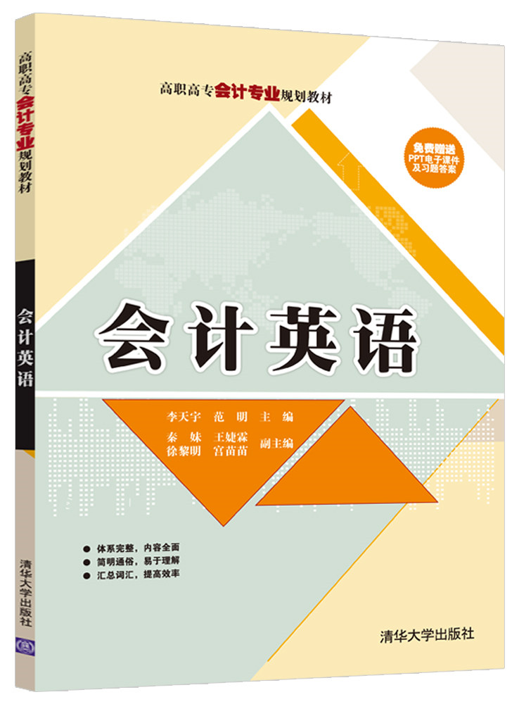 前 言 近年来,随着我国社会主义市场经济的建立与发展,中国与世界各国的交往日益频繁。为了与国际接轨,我国的财税、会计体制进行了重大的变革,这对英语教学提出了更高的要求,培养新世纪合格的会计人员已成为当务之急。为此,我们总结了自己多年来从事会计英语教学的经验,编写了这本《会计英语》。本书共有九章,分别从知识概述、会计等式和复式记账、会计循环、流动资产、非流动资产、负债、所有者权益、财务报表及财务报表分析等方面展开介绍。 本书的特点如下。 一、各章的独立性和全书的系统性相结合。全书共有九章,每章集中介绍一个财务知识点,各章自成体系,可以单独讲授。各章中都有实例说明;各章所研究的财务知识点联系起来构成完整的财务知识体系,全书是一个有机整体。 二、理论和实践相结合。学生通过本书的学习,不仅能够阅读会计单据、了解会计业务,而且能够达到用英语记账的水平。在每章后都有要求用英语处理的问题和练习。 三、本书简明通俗。全书专业术语压缩到300个左右,这些专业术语在本书中反复出现,在各章的练习中反复练习。这种编写方法,便于学生对专业术语的记忆和运用,有利于激发学生学习的兴趣,提高熟练程度,避免“消化不良”。 四、书中每章配有课前任务,方便学生预习并引出本章授课内容;每页都有留白,方便记录笔记。 五、本书的特色鲜明,建议学生在使用本书时注意以下几点。 (1) 本书的学习者应具备会计基础和财务会计知识。 (2) 每章后均汇总了本章的双语专业词汇表,学习每章前,先看该表必定会大大提高学习效率。学习每章后,适当做些辅助练习。 (3) 会计英...