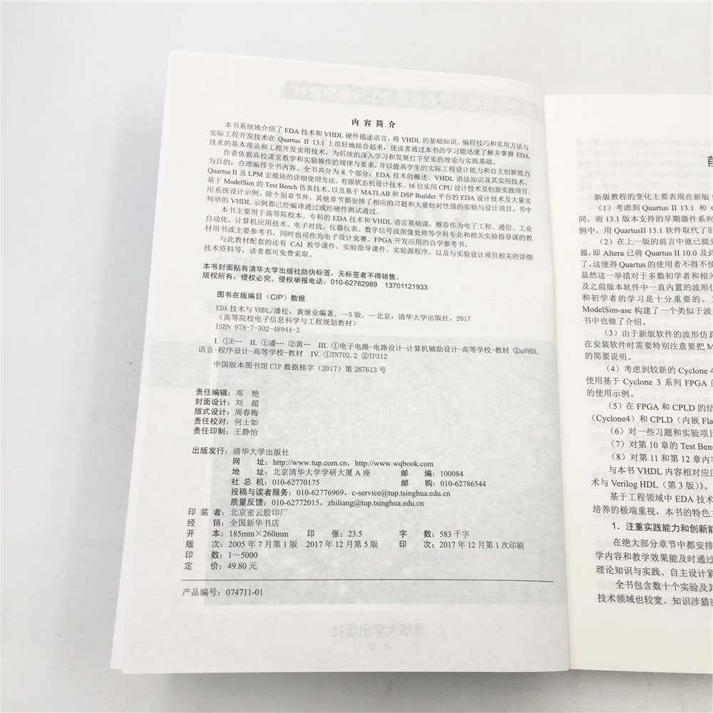 本书系统地介绍了EDA 技术和VHDL 硬件描述语言,将VHDL 的基础知识、编程技巧和实用方法与实际工程开发技术在Quartus II 13.1 上很好地结合起来,使读者通过本书的学习能迅速了解并掌握EDA技术的基本理论和工程开发实用技术,为后续的深入学习和发展打下坚实的理论与实践基础。 作者依据高校课堂教学和实验操作的规律与要求,并以提高学生的实际工程设计能力和自主创新能力为目的,合理编排全书内容。全书共分为8 个部分:EDA 技术的概述、VHDL 语法知识及其实用技术、Quartus II 及LPM 宏模块的详细使用方法、有限状态机设计技术、16 位实用CPU 设计技术及创新实践项目、基于ModelSim 的Test Bench 仿真技术、以及基于MATLAB 和DSP Builder 平台的EDA 设计技术及大量实用系统设计示例。除个别章节外,其他章节都安排了相应的习题和大量针对性强的实验与设计项目。书中列举的VHDL 示例都已经编译通过或经硬件测试通过。 本书主要用于高等院校本、专科的EDA 技术和VHDL 语言基础课,推荐作为电子工程、通信、工业自动化、计算机应用技术、电子对抗、仪器仪表、数字信号或图像处理等学科专业和相关实验指导课的教材用书或主要参考书,同时也可作为电子设计竞赛、FPGA 开发应用的自学参考书。 与此教材配套的还有 CAI 教学课件、实验指导课件、实验源程序,以及与实验设计项目相关的详细技术资料等,读者都可免费索取。