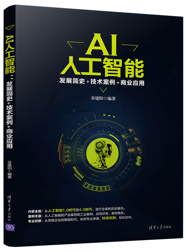 《AI人工智能:发展简史+技术案例+商业应用》通过“知识+案例”两条线索帮助读者全方位、多角度地了解人工智能。 纵向知识线包括三大认识、三大价值、三大盈利模式、三种营销变化、四个时代、五大商业模式、八大技术、八大热门领域、八种研究成果、九种热卖商品等,针对人工智能的基本概念、发展阶段、研究价值、市场状况、基础技术、发展前景、营销应用、热门领域、热卖商品和研究成果等内容,向读者进行系统化的介绍。 横向案例线共包含12章专题内容,详解了20多个领域的70多种智能产品和应用,内容涉及智能家居、智能安防、无人驾驶、智能社交、智能生产、工业设计、智能检测、电子商务、军事航天、法律预判、智能医疗、机器人、智能营销、智能理财、智慧社区、智能交通、智能助理、智能管理等,同时通过120多个图解、190张图片对不同领域人工智能的应用、产品和特点进行了展示。 《AI人工智能:发展简史+技术案例+商业应用》结构清晰,适合对人工智能及其相关技术和产品感兴趣,想全面了解人工智能的读者阅读。