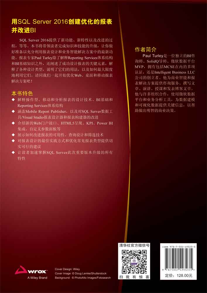 作者简介Paul Turley是一位独立的BI咨询师、SolidQ导师、微软数据平台MVP,拥有包括MCSE在内的多项认证,还是Intelligent Business LLC公司的创立者。他为商业智能和报表解决方案提供咨询服务、撰写文章、演讲、授课和发表博客文章。他与许多组织合作,使用微软数据平台和业务分析工具,为数据建模和可视化数据提供关键信息,以帮助做出明智的商业决策。