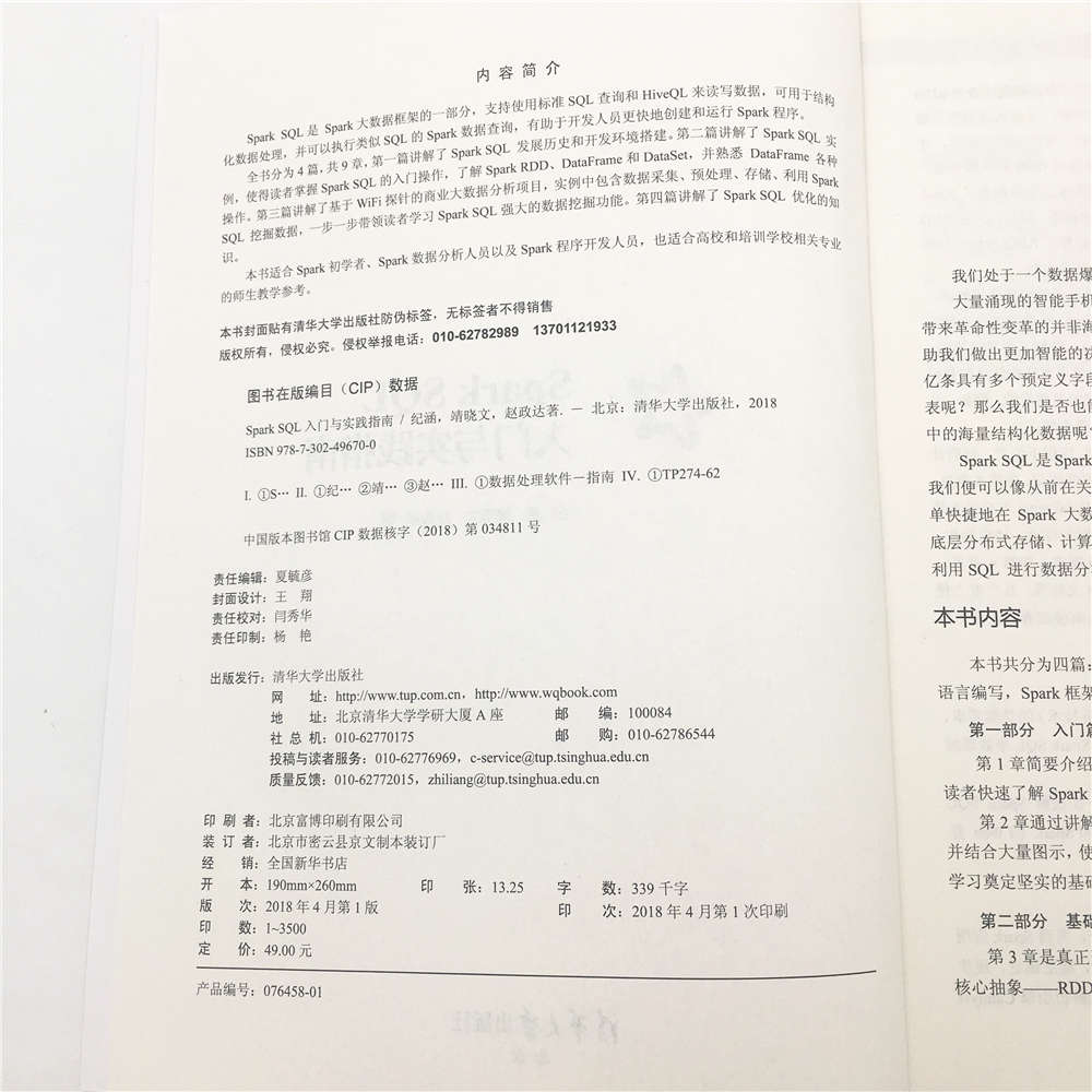 Spark SQL是 Spark大数据框架的一部分,支持使用标准SQL查询和HiveQL来读写数据,可用于结构化数据处理,并可以执行类似SQL的Spark数据查询,有助于开发人员更快地创建和运行Spark程序。 全书分为4篇,共9章,第一篇讲解了Spark SQL 发展历史和开发环境搭建。第二篇讲解了Spark SQL 实例,使得读者掌握Spark SQL的入门操作,了解Spark RDD、DataFrame和DataSet,并熟悉 DataFrame 各种操作。第三篇讲解了基于WiFi探针的商业大数据分析项目,实例中包含数据采集、预处理、存储、利用Spark SQL 挖掘数据,一步一步带领读者学习Spark SQL强大的数据挖掘功能。第四篇讲解了Spark SQL 优化的知识。 本书适合Spark初学者、Spark数据分析人员以及Spark程序开发人员,也适合高校和培训学校相关专业的师生教学参考。