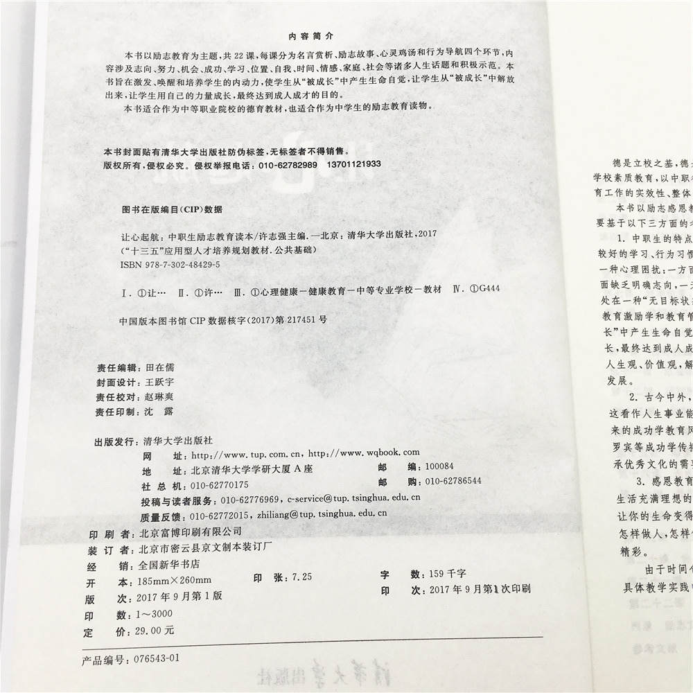 满满的励志教育内容,唤起学生的内动力双色印刷,精美排版适合作为中等职业学校作为立志教育教材