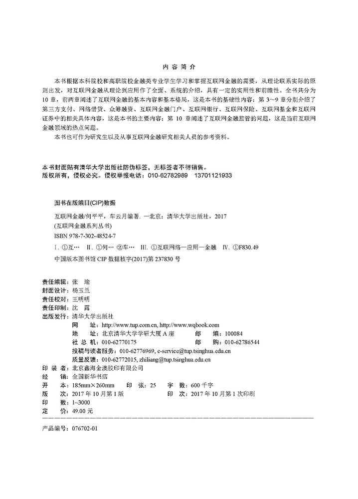 本书根据本科院校和高职院校金融类专业学生学习和掌握互联网金融的需要,从理论联系实际的原则出发,对互联网金融从理论到应用作了全面、系统的介绍,具有一定的实用性和前瞻性。全书共分为10章,前两章阐述了互联网金融的基本内容和基本格局,这是本书的基础性内容;第3~9章分别介绍了第三方支付、网络借贷、众筹融资、互联网金融门户、互联网银行、互联网保险、互联网基金和互联网证券中的相关具体内容,这是本书的主要内容;第10章阐述了互联网金融监管的问题,这是当前互联网金融领域的热点问题。 本书也可作为研究生以及从事互联网金融研究相关人员的参考资料。