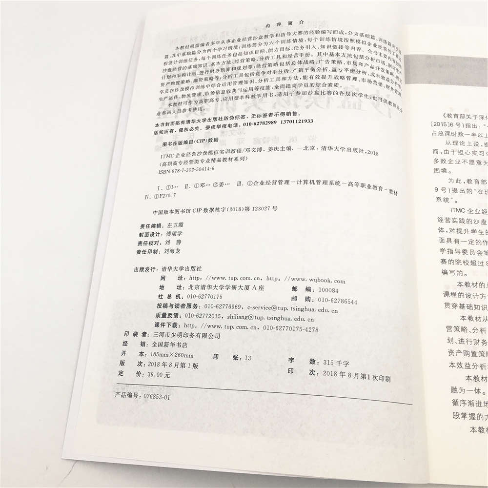 《ITMC企业经营沙盘模拟实训教程》是针对ITMC企业经营管理电子沙盘与物理沙盘系统而编写。本教材的总体设计思路是按照“工学结合”人才培养模式的要求,采用工作过程系统化课程的设计方法,按照企业经营沙盘模拟的工作过程循序渐进设计工作任务,每个工作任务贯穿基础知识和方法、经营策略和分析工具,注重学生技能和素质的培养。 本教材从沙盘的实际出发,通俗易懂,主要内容包括沙盘经营的基础知识、基本方法、经营策略、分析工具和八年的经营手册。其中基本方法包括分析市场、制订生产计划和采购计划、进行财务预算和规划等;经营策略包括总体战略、广告策略、市场和产品开发策略、固定资产购置策略、融资策略等;分析工具包括竞争对手分析、产销平衡分析、盈亏平衡分析、成本效益分析和财务分析等。 本教材充分利用ITMC电子沙盘系统,基础篇将沙盘基础知识、初始年经营和规则讲解融为一体。企业模拟经营分为两段: 第一段是训练阶段,学员经营4~6年,教师在每一年循序渐进地讲解管理方法、经营策略和分析工具;第二段是实战经营阶段,学员运用第一阶段掌握的方法和策略经营模拟企业6~8年,教师进行适当的辅导和总结。