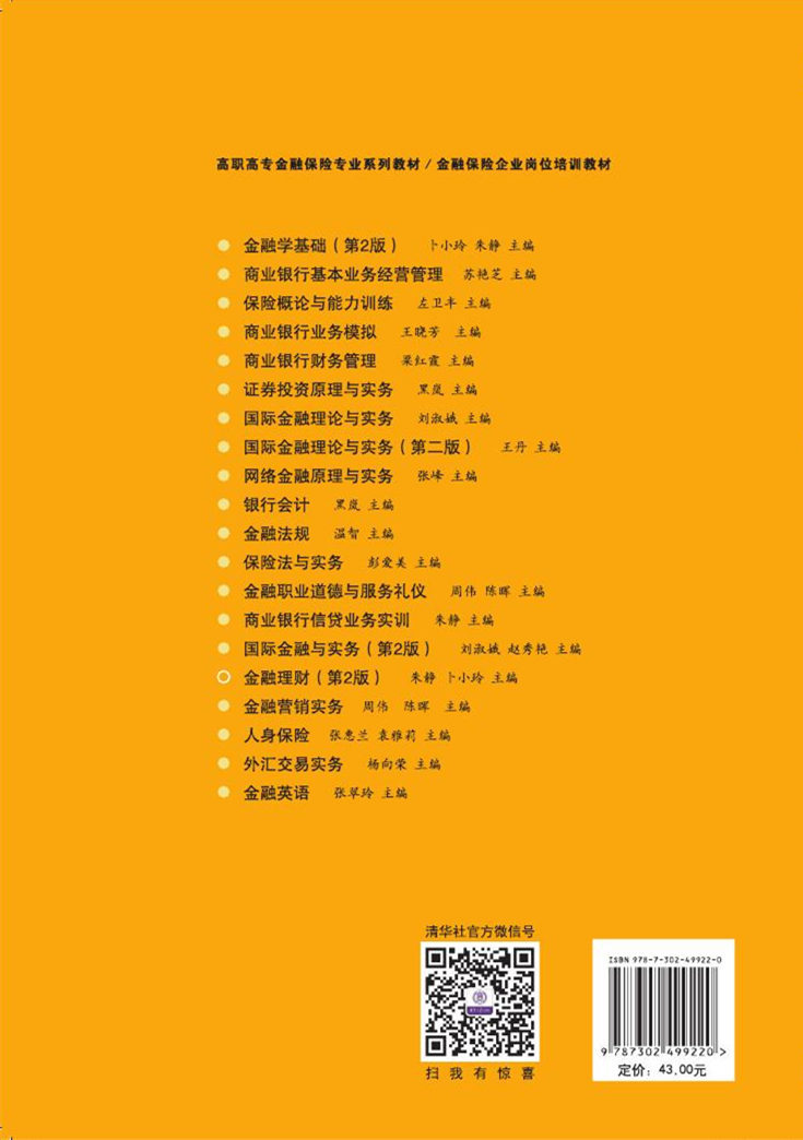 古代民间有句老话,“吃不穷、穿不穷,算计不到就受穷”,说的就是金融理财,也在告诫人们无论收入多少,都要支出有计划,做好安排再花钱。金融理财可以帮助企业积累财富,也可以协助个人发家致富,还可以有效防范各种风险,在促进经济发展、强国富民、改善民生、赈灾救灾、社会稳定、构建和谐社会中发挥着越来越重要的作用。 随着我国经济的蓬勃发展,不仅企业财富快速积累,广大人民也获得了可观的实际收益。企业需要理财,个人、家庭也需要理财,目前随着财富正在迅速向亚洲转移,金融理财作用日趋凸显。 由于全民收入逐年增加,个人资金快速积累,买汽车、购房产、买保险、购基金、炒股票、炒黄金等已经成为人民大众的普遍投资行为。目前我国理财热潮高涨、市场潜力巨大。随着金融经济发展和战略重点的转移,金融理财和财富管理业务的升温扩张,社会急需懂经营、会策划、善沟通、能执行的操作实施型金融理财专业技能人才。 本书自2006年出版以来,因写作质量高、突出学用结合,而深受全国各类高校广大师生的欢迎,目前已经8次重印。此次再版,作者审慎地对原教材进行了篇幅压缩、案例更新、新知识补充等相应修改,以更好地为国家经济建设服务。 “金融理财”是金融管理专业的核心基础课程,也是金融服务从业人员必须掌握的关键知识和技能。本书共十一章,以学习者应用能力培养为主线,根据国际金融市场竞争新特点和金融理财的新发展,依照金融理财业务运作的基本过程和规律,系统介绍金融理财工具、股票理财、债券理财、银行理财、证券投资基金理财、保险理财、信托理财、黄金产品理财、互联网理财和收藏其他理财等金融理财基本知识,并注重强化操作流程、交易方法、策略技巧等应用技...