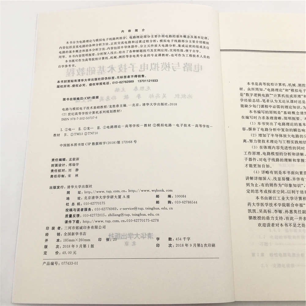本书分为电路理论与模拟电子线路两部分。电路理论部分主要介绍电路的基本概念及基本定律,内容包括直流电路的各种分析方法、正弦交流电路和过渡过程分析; 模拟电子线路部分主要介绍模拟电路的基本概念和基本分析方法,内容包括半导体器件、分立元件放大电路分析、集成运放的组成及应用等。本书内容简明扼要,分析深入浅出,给出了各种解题技巧及实例应用,实用性强,便于自学。 本书既可作为高等院校计算机、机械、测控等非电类专业的专业课教材,也可作为工程技术人员的自学参考书。