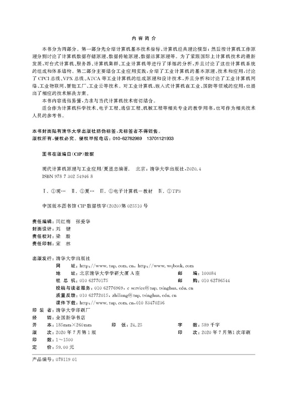 前言 本书全面分析了计算机的基本组成原理和最新设计技术,旨在培养读者深入理解计算机硬件设计的能力,帮助读者利用所学知识解决专业领域具体问题。 教材特色 (1) 讨论设计技术。教材在理论方面讨论了图灵机结构、冯·诺依曼结构、数据存储的局部性原理、CPU流水线结构、GPU并行计算、分布式计算问题等; 在新技术方面,讨论了计算机集群结构、Hadoop分布式计算平台、ARM、PowerPC嵌入式系统结构、云计算等内容; 在实用技术方面,讨论了国产化自主可控计算机等内容。教材在力求保持学科广度的同时,兼顾学科深度,并对所涉及的主题给出具体的应用案例。 (2) 解决工程问题。教材以工业计算机在工程实际中的应用为案例,讨论和分析计算机工业控制和应用等问题。例如,介绍了工业物联网技术、智慧工厂的数据采集与传输、嵌入式计算在车载加固计算机领域的应用、嵌入式技术在航电系统中的应用等。通过工程实际案例的教学,使学生更加深入地理解计算机的设计与应用。 (3) 讲解通俗易懂。作者从学生的角度出发,按照学生理解问题的思路和方式来写作,力求教材内容通俗易懂,图文并茂。全书通过大量的图表和案例,通俗地介绍和分析一些复杂的知识结构和难以理解的技术问题。例如,讲解各种常用系统结构时,案例尽量图形化、表格化,而不是利用计算公式对系统结构进行说明。 主要内容 本书分为两大部分。第一部分(第1~8章)首先分析和讨论了计算机硬件设备最基本的操作——编码、存储、传输、计算; 然后讨论和分析了台式机、服务器、计算机集群。第二部分(第9~11章)主要讨论工业计算机的设计技术及其在企业和军事领域的应用,...