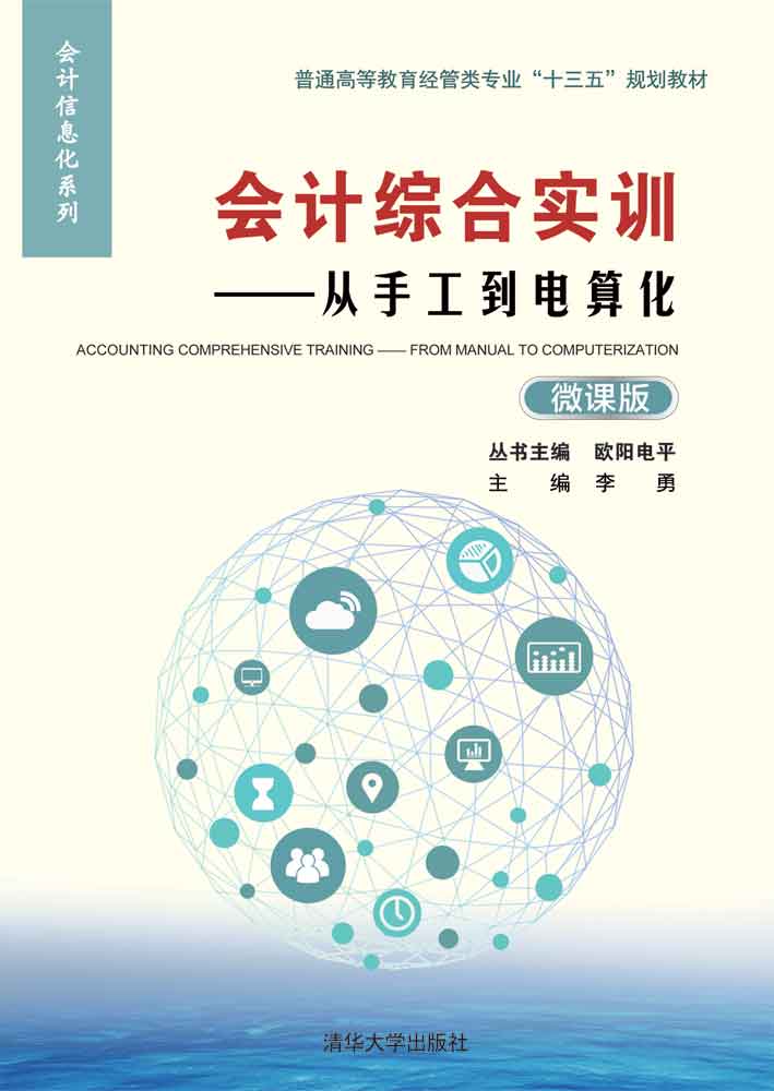 前 言 会计综合实训是为提高学生的专业实践能力,为毕业上岗对接,在财会专业高年级(一般在大三下学期、大四上学期)开设的一门专业综合模拟实习课程。主要目的是培养学生将所学的专业理论知识应用到企业财会工作实际的综合运用能力,熟悉企业财会业务的工作流程,提高学生分析问题和解决问题的能力,培养学生严谨、务实、负责的工作态度与职业素养。然而,在信息技术飞速发展与广泛应用的时代,会计这一传统职业的工作环境、工作手段也发生了巨大的变化,会计综合实训课程也必须与时俱进,顺应时代的发展。显然,会计信息化是发展的必然趋势。那么,手工会计处理方式还需掌握吗?我们根据多年的教学经验,认为是需要的。首先,会计综合实训主要是对学生所学的专业理论知识应用到会计工作实践的训练,重在专业知识综合应用实训,手工会计处理方式能使学生更加贴近专业实践,增强感性认识,有利于分析问题、解决问题能力的培养;其次,当前我国经济处于转型发展期,不少企业,尤其是快速发展的中小微型企业还需要会计人员掌握手工会计处理方式。考虑到各高校对会计综合实训课程开设的不同,我们将教材分成《会计综合实训——从手工到电算化》(上篇)和《会计综合实训——业务财务一体化》(下篇)两本姊妹篇。 《会计综合实训——从手工到电算化》共分四章: 第一章会计综合实训概述,主要介绍实训的目的、特点、方式、内容、要求、安排等; 第二章会计综合实训资料,以某服装制造企业真实业务材料为基础,以各种原始凭单为样本,为手工和电算化实训提供了一个会计期的完整业务素材; 第三章手工会计实训过程,以“云存储”“二维码”等信息技术为手段,将纸质教材与多样化...