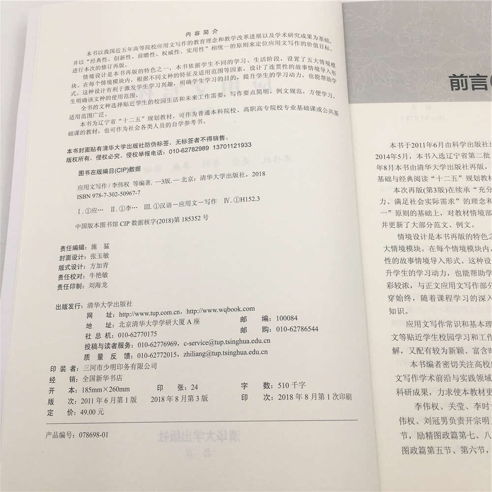 应用文写作常识和基本理论的部分,具体介绍了机关公文、日常应用文、经济应用文等贴近学生校园学习和工作的常用文体,每种文体写作既包含精当明晰的理论知识讲解,又配有较为新颖、富含时代感的典型个案。
