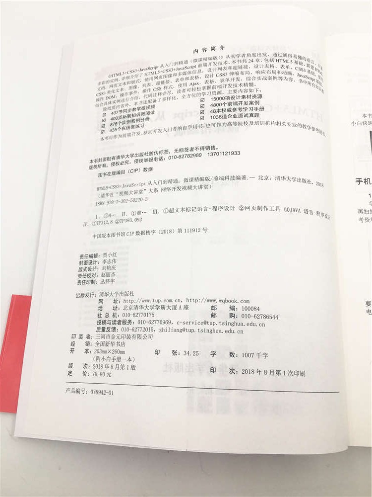 1. 《HTML5+CSS3+JavaScript从入门到精通(微课精编版)》提供了多样化、全方位的学习资源,帮助读者轻松掌握HTML5+CSS3+JavaScript 技术,从小白快速成长为前端开发高手。