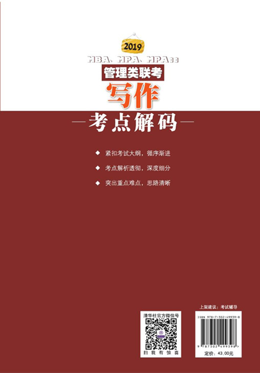 01总序 我国自1997年开始组织工商管理硕士(MBA)研究生入学考试(简称MBA联考)。2010年,我国扩大了专业硕士学位招生,把MBA(工商管理硕士)、MPA(公共管理硕士)、MPAcc(会计硕士)、MEM(工程管理硕士)、MTA(旅游管理硕士)、MAud(审计硕士)、MLIS(图书情报硕士)等专业硕士的入学考试组成了管理类硕士联考。2016年12月,EMBA(高级管理人员工商管理硕士)也加入了这个考试,这样参加管理类硕士联考的考生数量更加庞大了。 2003年以来,笔者一直从事管理类硕士联考辅导工作,深知参加联考同学之不易。在繁忙的工作中备考,复习过程中往往要放弃许多与家人共度周末、与朋友娱乐休闲的机会。复习范围广,时间紧,丢掉书本多年,等等,这些都是备考MBA、MPA、MPAcc等联考的同学所面临的共同难题。 在管理类联考试卷中,绝大部分考生都感觉“综合能力”这张试卷时间特别紧迫,在数学、逻辑、写作三个科目中,往往顾此失彼,交卷的铃声一响,许多考生只能望卷兴叹。因此,一套能帮助广大考生在极其有限的时间内缩小复习范围、抓住考试重点、直击考试真题、提高解题速度、预测命题趋势的备考丛书对考生来说无疑是雪中送炭。为此,笔者在积累十几年一线教学经验的基础上,编写了这套管理类联考备考丛书。丛书分4个系列,分别是“考点解码”系列、“快速解题技巧”系列、“历年真题详解”系列和“考前预测密卷”系列。 一、 “考点解码”系列 “考点解码”是这套丛书的基础,着眼于帮助考生厘清基本考点、熟练基本概念、掌握基本方法。 本系列图书与市面上其他辅导书不同之处在于撇开了传统书籍按章节笼统介...