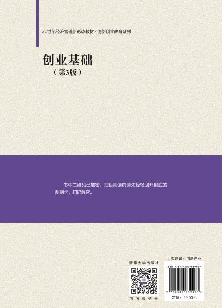 前 言 2012年8月1日,教育部下发了《普通本科学校创业教育教学基本要求(试行)》的通知(教高厅〔2012〕4号)文件,标志着我国大学生创业教育课程建设进入了有明确规范可依的发展阶段,很多高校纷纷开始开设“创业基础”必修课或选修课,但普遍缺乏规范教材。为此,高质量的教材编写被提上了议事日程。 为满足许多高校的需求,清华大学出版社及时邀请了教育部《普通本科学校创业教育教学基本要求》专家组的6位专家开展《创业基础》教材的编写工作。该社刘志彬先生、杜星先生精心策划,鼎力支持,亲力亲为;各位专家广开思路,贡献智慧,全心投入。大家群策群力,结合高校“创业基础”课程的重点难点,立足真正实现创业基础课程的目标,完善优化高校“创业基础”课程的教学内容与教学方法,构建了编写框架和体例。2015年5月,国务院印发《关于深化高等学校创新创业教育改革的实施意见》,提出了完善人才培养质量标准、创新人才培养机制、健全创新创业教育课程体系、改革教学方法和考核方式、强化创新创业实践的要求。为此,参与本教材编写的各位专家又与清华大学出版社一起对教材进行了修订,特别增加了创新、创新思维、创新精神和创新型人才素养要求的内容,选取了更多鲜活的案例,推出了《创业基础》(第3版)。全书采用模块化结构设计,在内容呈现体例上设有: 【本章提要】概括本章主旨,明确知识脉络,引导阅读与学习。 【学习重点和难点】厘清知识技能教与学的重点与难点。 【学习目的与要求】从态度、知识和技能层面清晰明了,细化学习目标。 【学习要点】提纲挈领,概括学生要掌握的基本知识点。 【本章小结】“重要术语”结合章节主题,...