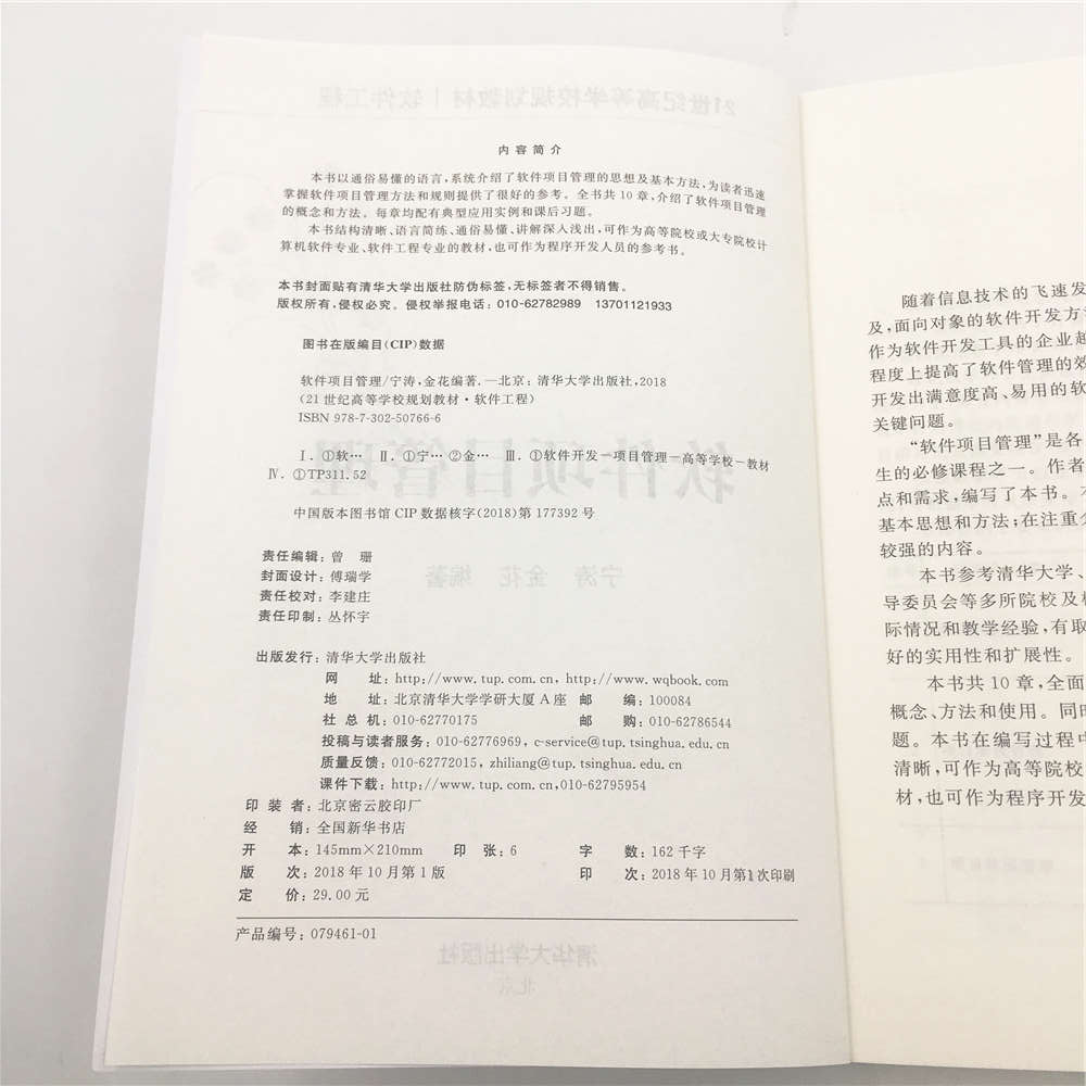 前言 随着信息技术的飞速发展,尤其是高级编程语言的发展和普及,面向对象的软件开发方法越来越重要。使用项目管理的思想作为软件开发工具的企业越来越多,计算机硬件的发展也在很大程度上提高了软件管理的效率。如何更有效地利用项目管理思想开发出满意度高、易用的软件产品成为能否迅速占领用户市场的关键问题。 “软件项目管理”是各大专院校计算机专业、软件工程专业学生的必修课程之一。作者根据多年的教学经验,并结合学生的特点和需求,编写了本书。本书由浅入深地介绍了软件项目管理的基本思想和方法;在注重介绍基本概念的同时,重点介绍了实用性较强的内容。 本书参考清华大学、大连理工大学、全国高等教育自学考试指导委员会等多所院校及机构应用多年的教材内容,结合学生的实际情况和教学经验,有取舍地改编和扩充了原教材的内容,具有更好的实用性和扩展性。 本书共10章,全面、系统、深入地讲解了软件项目管理的基本概念、方法和使用。同时,每章都配有大量典型应用实例和课后习题。本书在编写过程中力求符号统一,图表准确,语言通俗,结构清晰,可作为高等院校或大专院校计算机专业、软件工程专业的教材,也可作为程序开发人员的参考书。 宁涛 2018年8月于大连