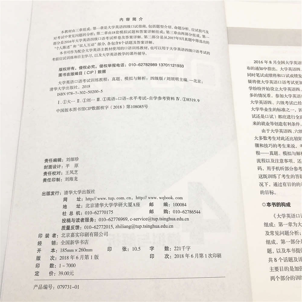 本书由三章组成:第一章是大学英语四级口试指南,包括题型介绍、命题分析、应试技巧及对考试中常见问题的分析;第二章由18套模拟试题和答案详解组成;第三章由两部分组成,第一部分是2016年大学英语四级口语考试样卷及答案详解,第二部分是从2017年5月真题中筛选出的“个人陈述”和“双人互动”部分,各包含8个话题及答案详解。本书可作为配合大学英语主教材使用的口语训练教材,也可以用于大学英语四级口语考试的考前应试训练和自主学习,以及大学英语教学的课外辅导。