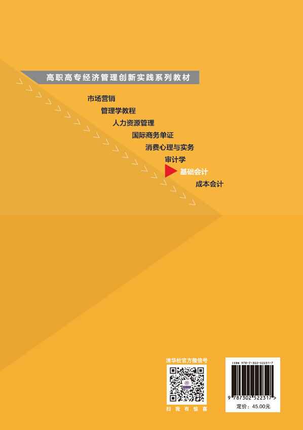 前言 基础会计是经济管理类专业非常重要的专业基础课程,是会计专业入门的必修课,其核心内容是介绍会计的基本原理。本书遵循高等职业教育“以就业为导向,以能力为本位,以实践为中心”的原则,让学生在参与每个章节认知—理解—实践的过程中构建合理的知识结构。本书模拟情境式教学环境,在对会计的基础理论、基础知识和基本操作技术进行阐述后,使学生对会计基本工作的全过程有完整的认识和把握,为学生进一步学习会计知识或相关课程,未来从事会计相关工作,打下坚实的基础。 本书主要有以下4个特点。 (1) 内容新颖。与初级会计师考试内容紧密结合,体现“双证融通”的特点。本书以2019年修订的《企业会计准则及应用指南》为依据,符合新要求;结合初级会计师考试相关内容,难易适中。 (2) 难易结合。本书适合各层次学生学习。本书对相对较难的内容以“”标识出来,初学者可以对标“”内容作一般了解,掌握较好的学生可以仔细研究标“”内容。学习层次由浅入深,较好把握。 (3) 框架合理。较难掌握的知识点均以流程图清晰展示。本书的知识框架以会计账务处理的流程为主线,对会计记账过程中的难点,以账户流转图的形式作出了详细阐述,实践课业环节以真实的会计凭证和会计账簿作为案例展示,更加清晰直观。 (4) 实践课业环节突出重点。每个章节最后都有一个实践课业环节,每个实践课业都浓缩了本章节的重要知识点,基于案例展示,布置对应作业内容,让学生在训练中提升对基础会计理论的认识,并熟悉实践操作。 本书在编写过程中参考了有关专家和学者的论著、教材及文献资料,融入了一些新的研究成果,在此向相关专家和学者表示衷心的感谢。 ...